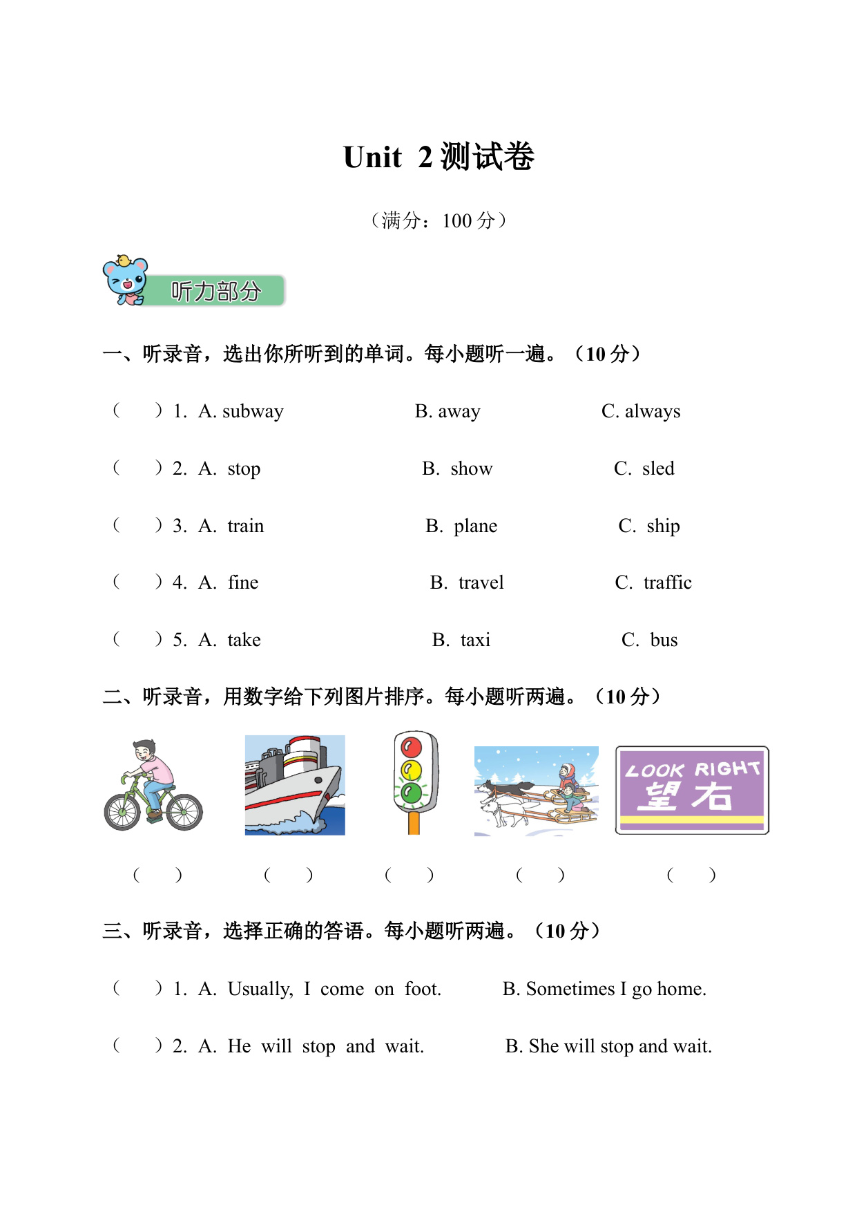 下一篇:六年级上册英语Unit 3 测试卷含听力