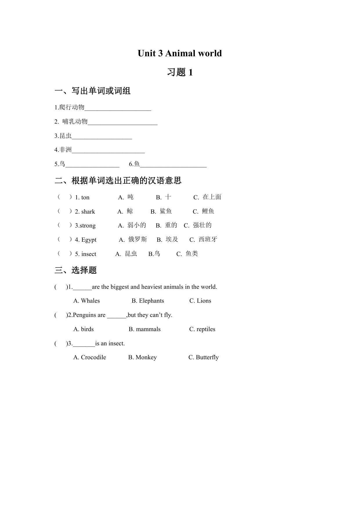 下一篇:六年级上册英语Unit 3 Animal world 习题 2