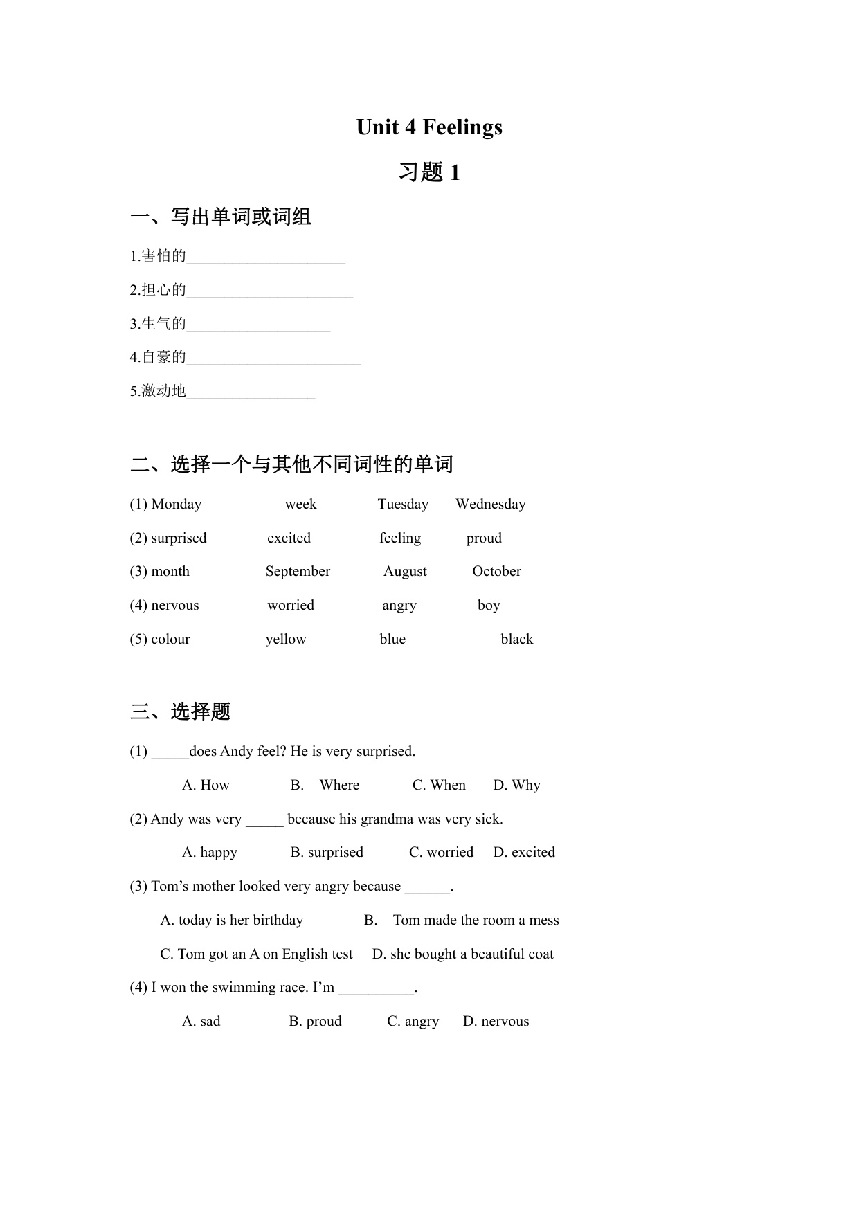 下一篇:六年级上册英语Unit 4 Feelings 习题 2