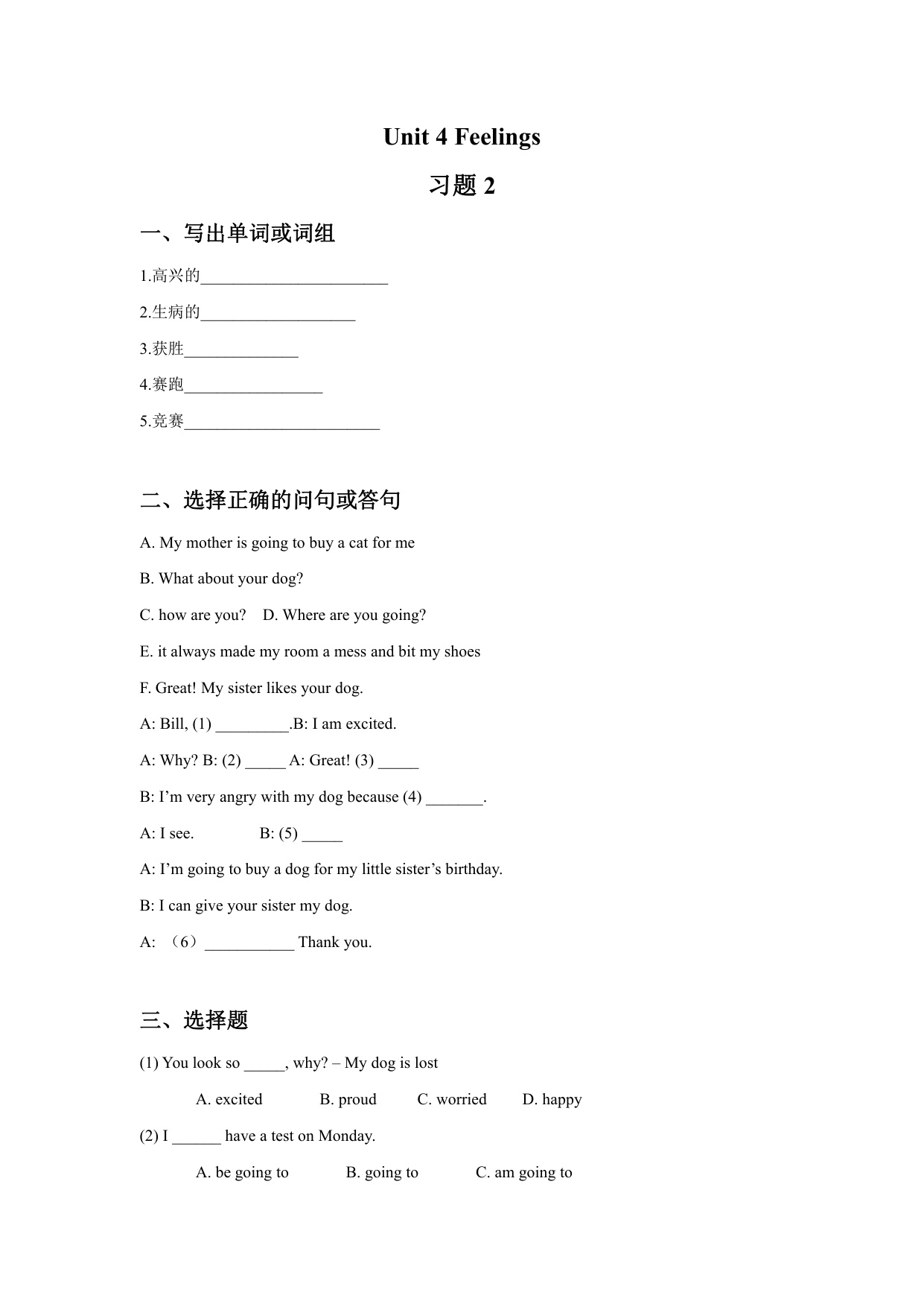 上一篇:六年级上册英语Unit 4 Feelings 习题 1