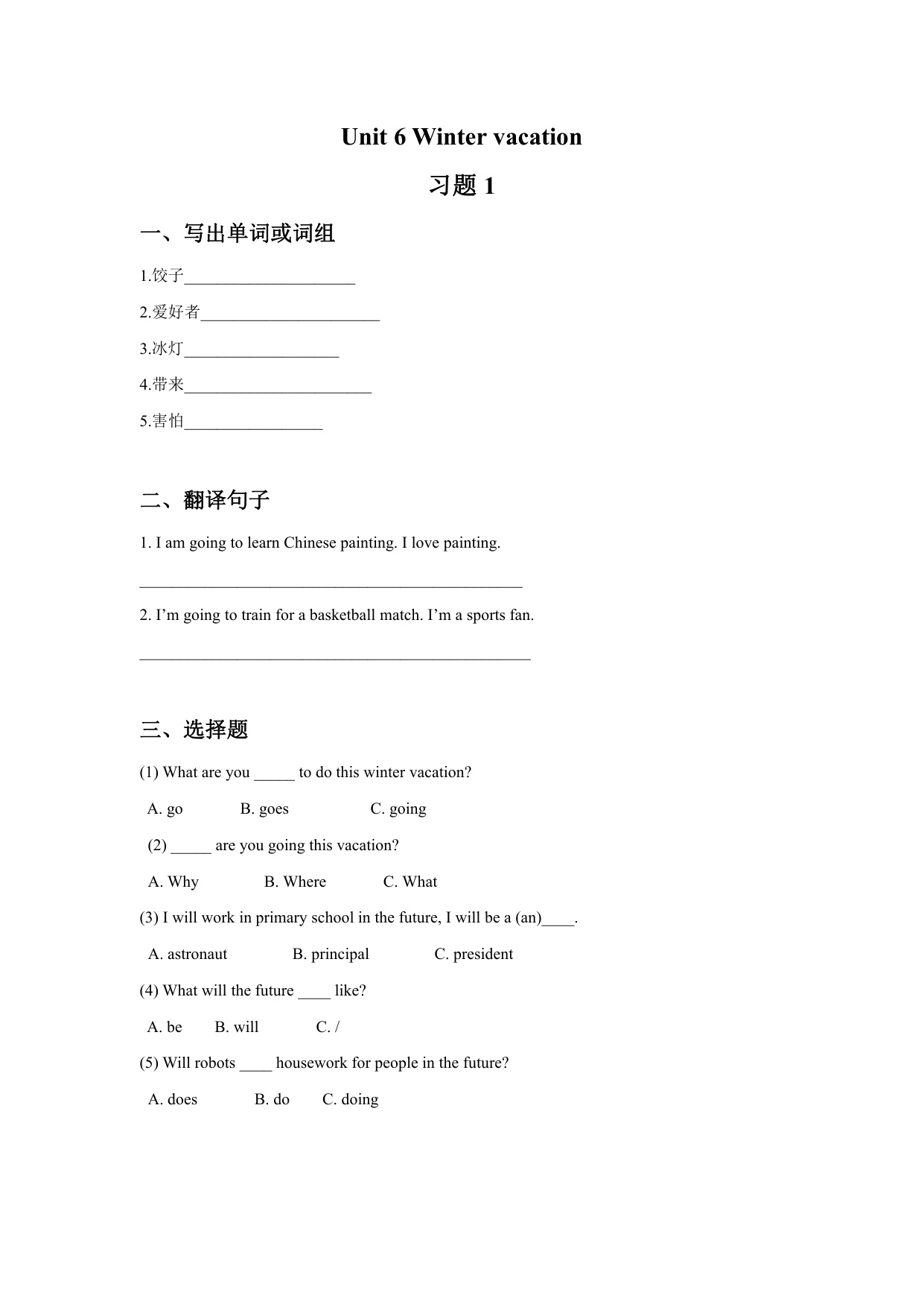 下一篇:六年级上册英语Unit 6 Winter vacation 习题 2