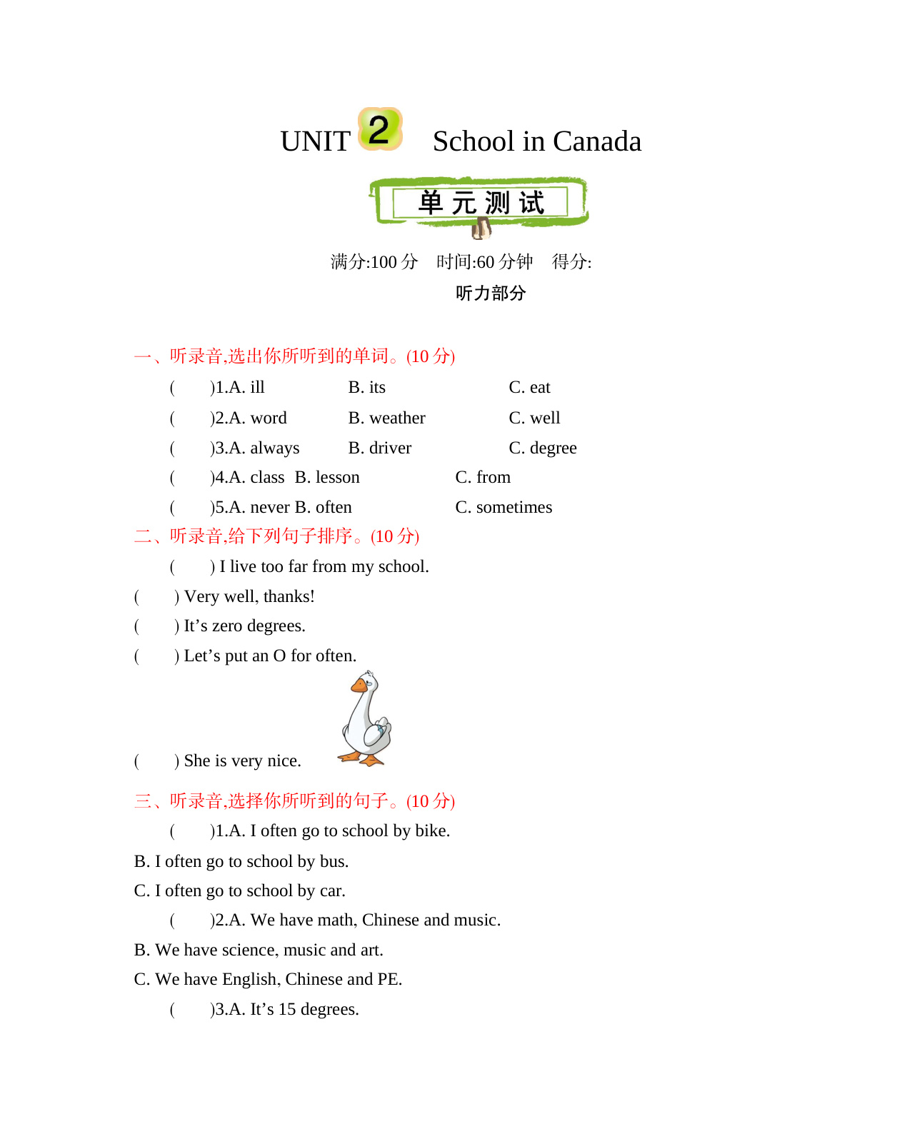 下一篇:冀教版六上 Unit 3 单元测试含听力与答案