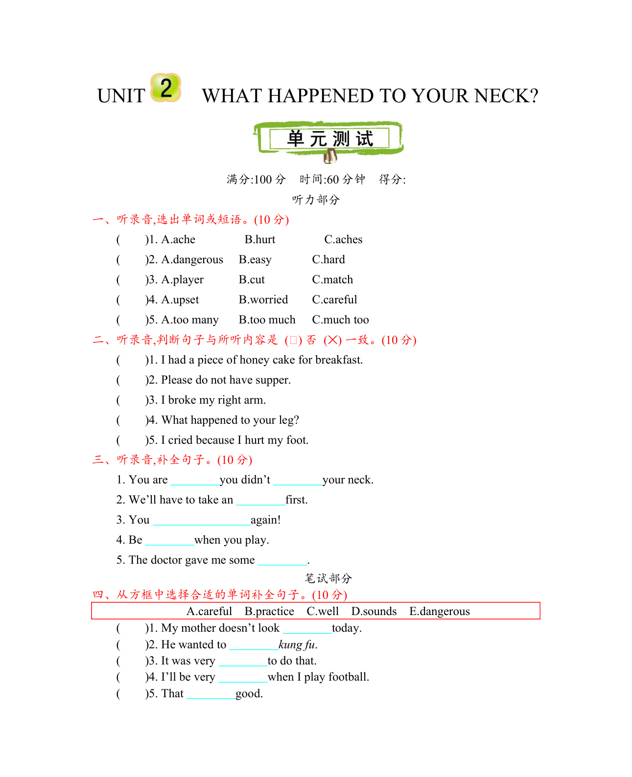 下一篇:北京课改六上 Unit 3 测试卷含听力