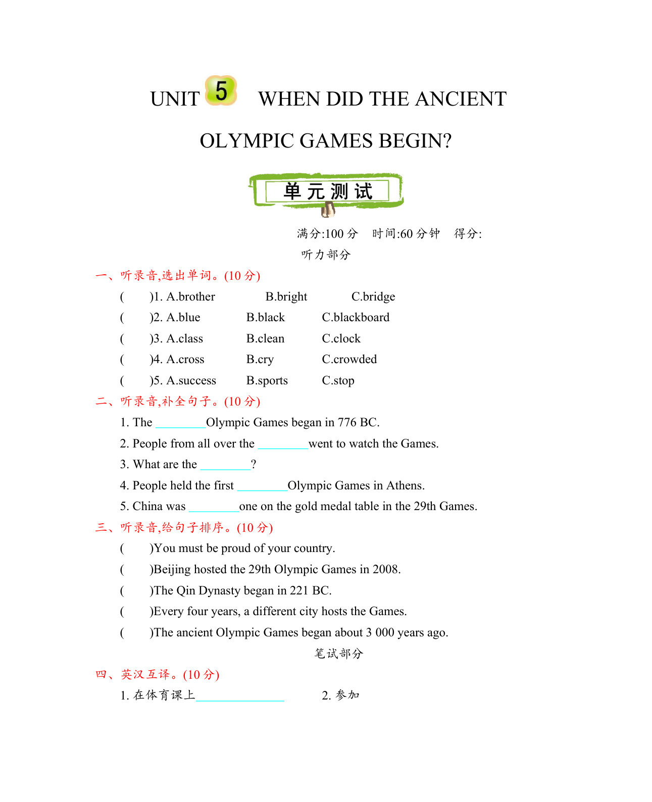 上一篇:北京课改六上 Unit 4 测试卷含听力