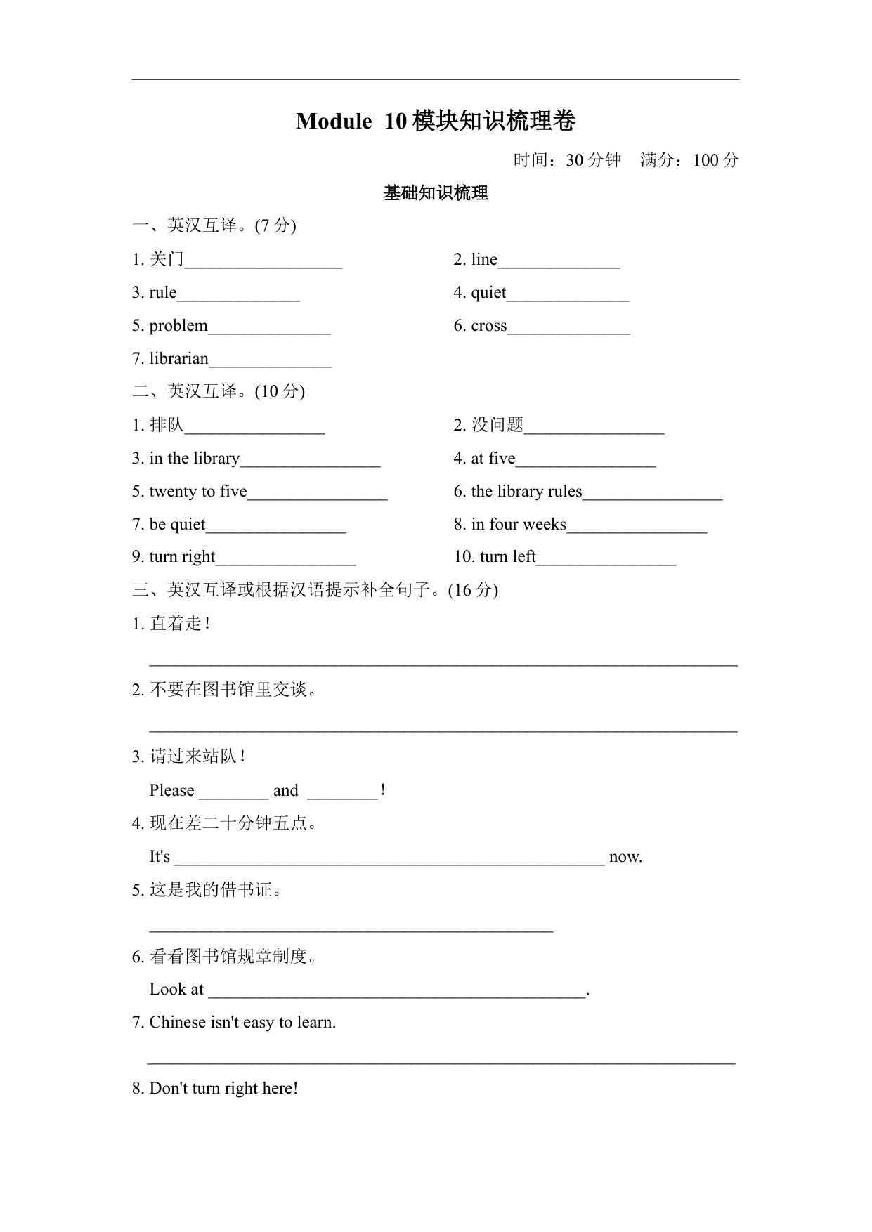 上一篇:外研三起六上英语-Module1 模块知识梳理卷