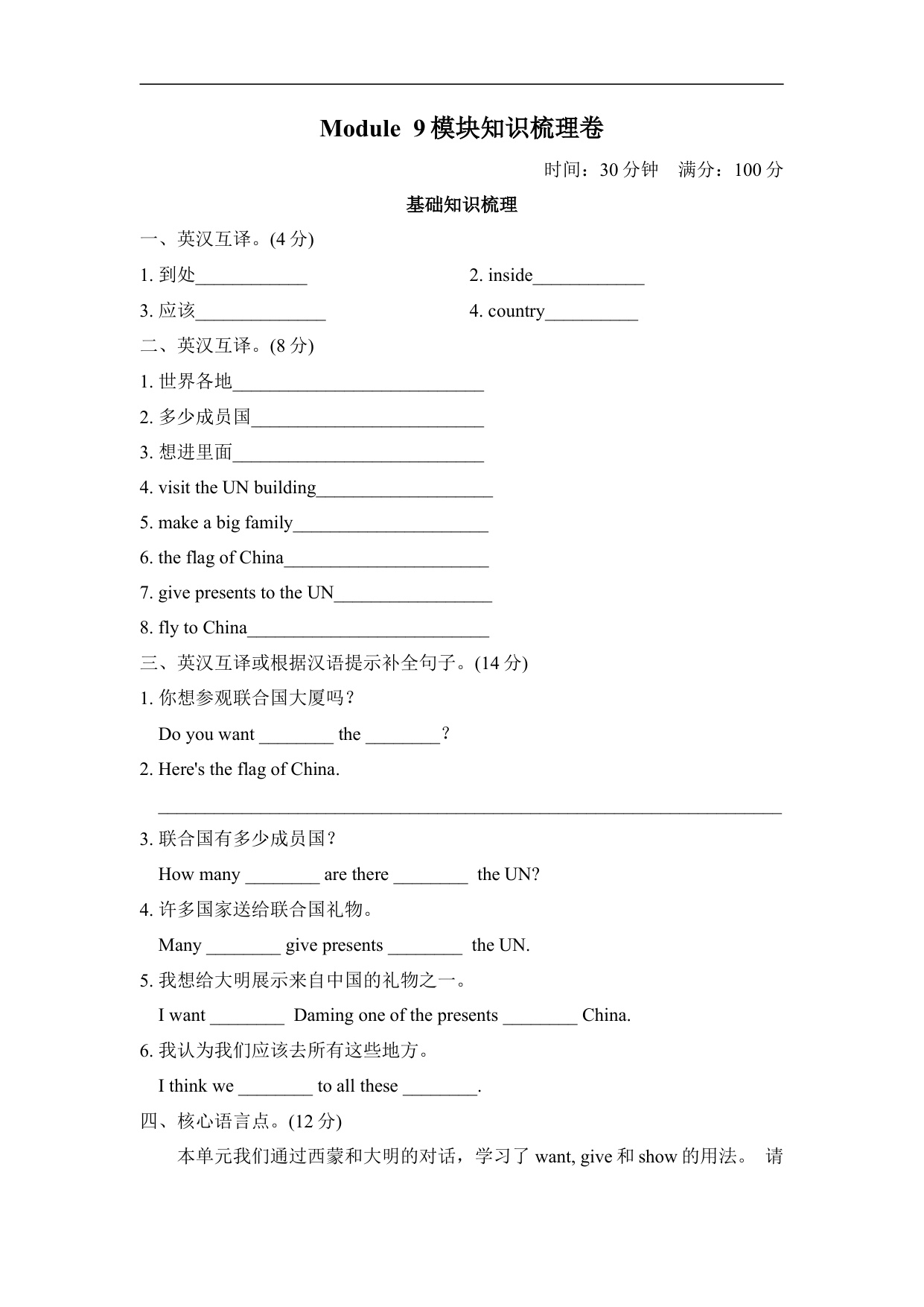 上一篇:外研三起六上英语-Module8 模块知识梳理卷