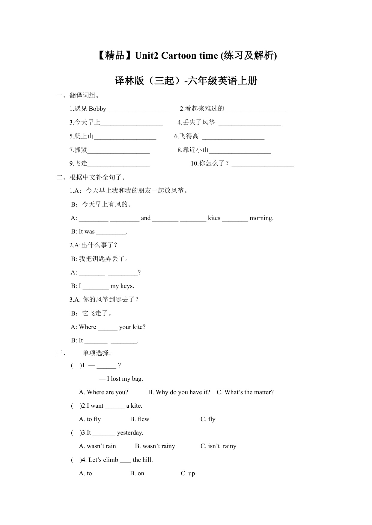 上一篇:一课一练-Unit1 Story time (练习及解析)译林版(三起)-六年级英语上册