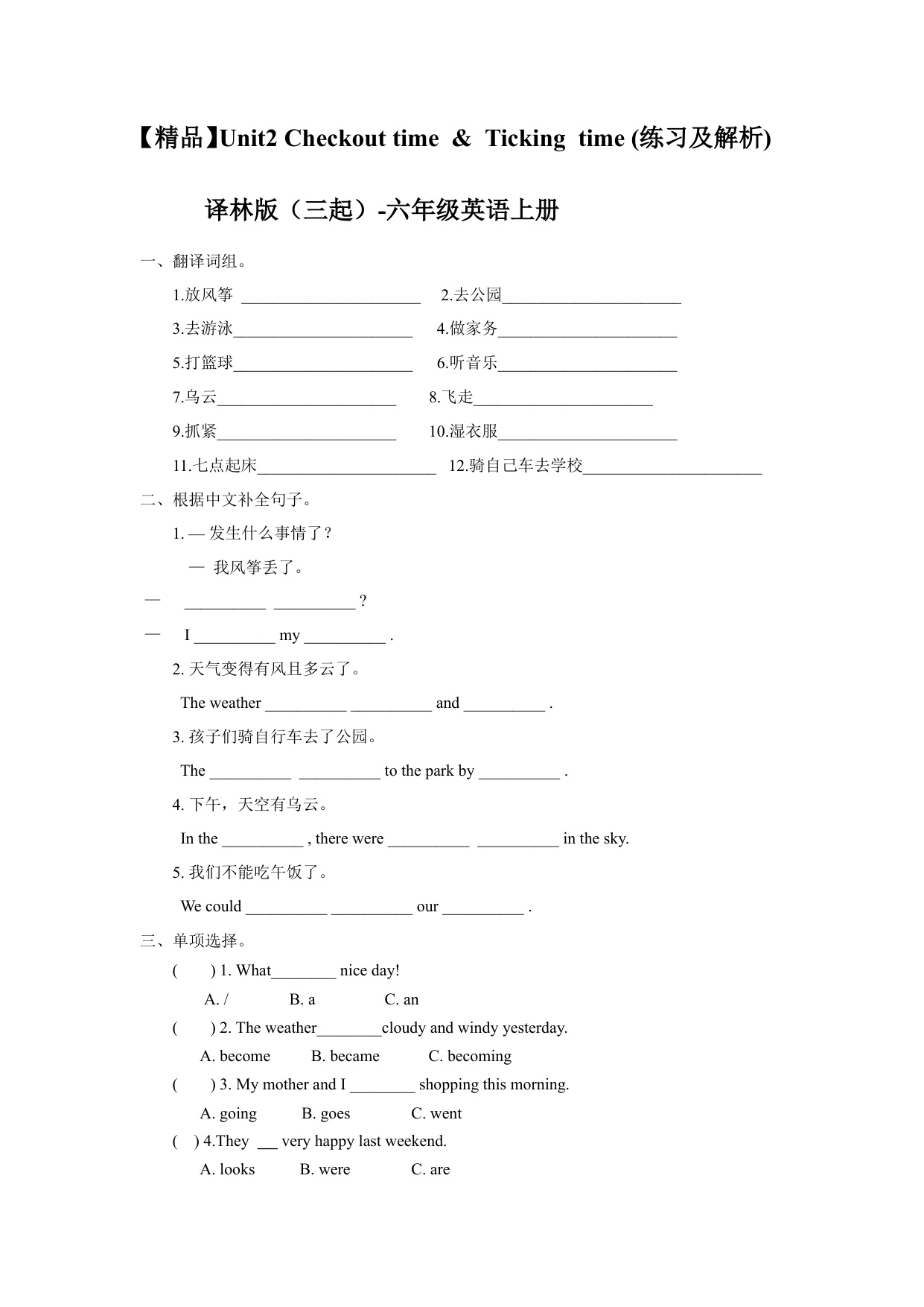 下一篇:一课一练-Unit2 Fun time, Sound time & Culture time (练习及解析)译林版(三起)-六年级英语上册
