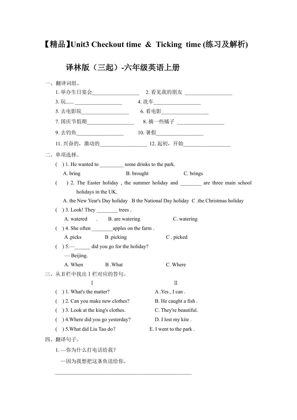下一篇:一课一练-Unit3 Fun time, Sound time & Culture time (练习及解析)译林版(三起)-六年级英语上册
