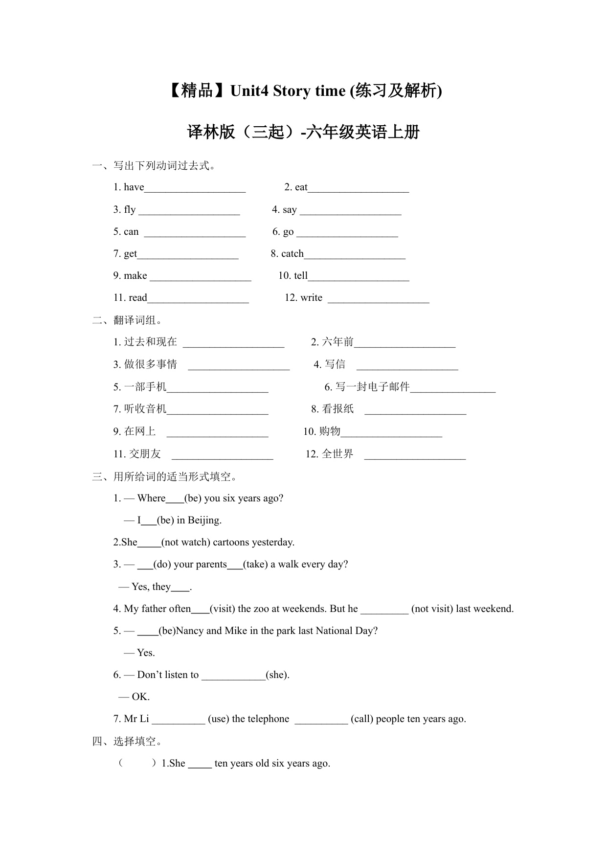 上一篇:一课一练-Unit4 Grammar time (练习及解析)译林版(三起)-六年级英语上册