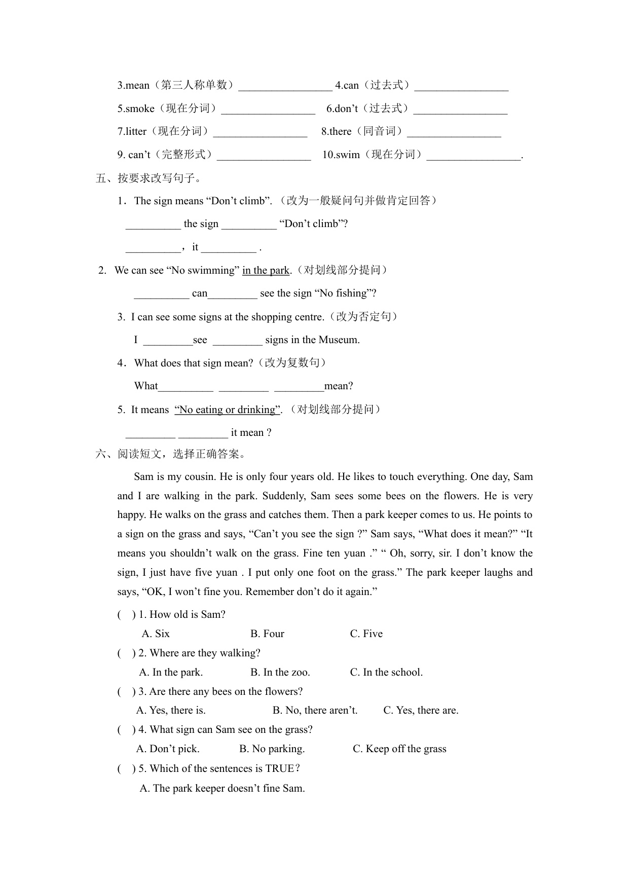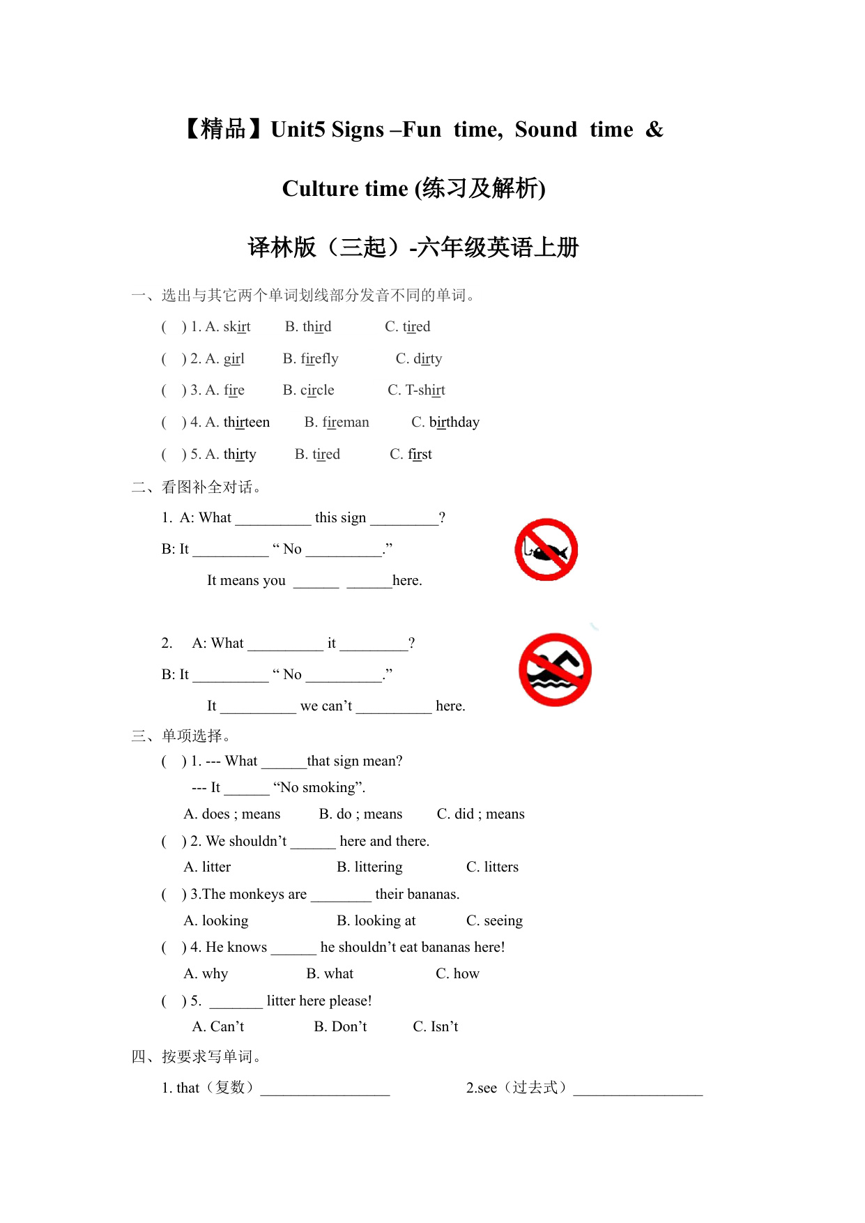 下一篇:一课一练-Unit5 Signs-Grammar time (练习及解析) 译林版(三起)-六年级英语上册