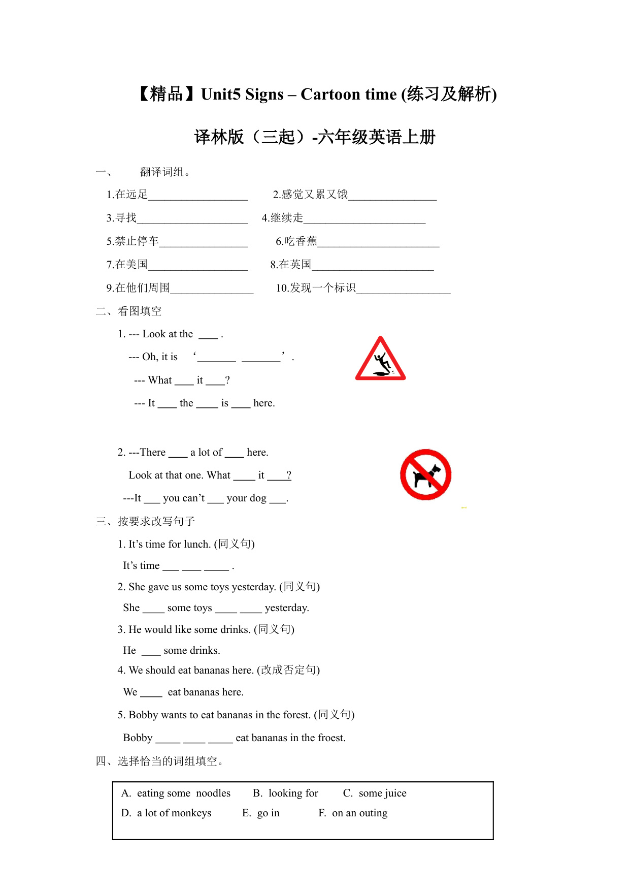 上一篇:一课一练-Unit5 Signs-Story time (练习及解析) 译林版(三起)-六年级英语上册