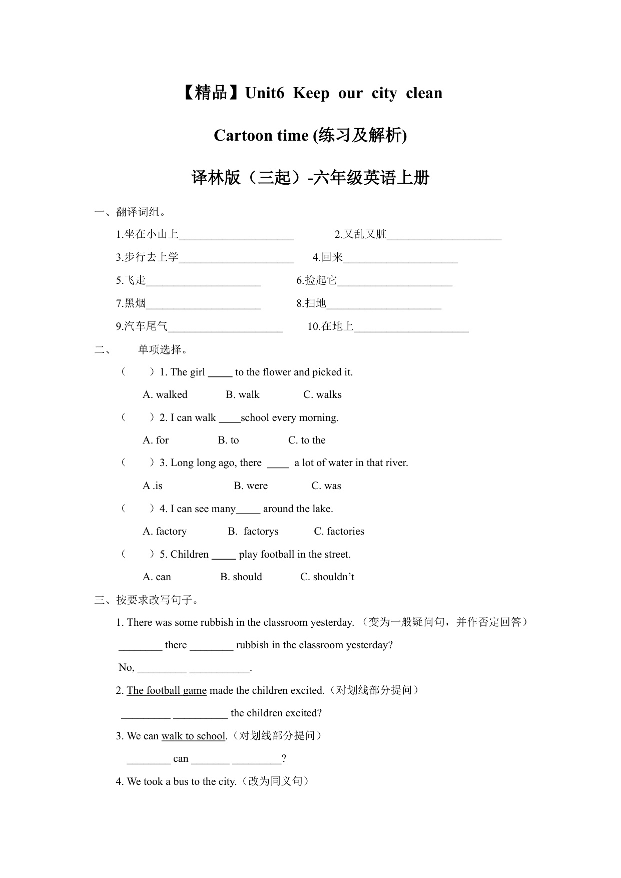 上一篇:一课一练-Unit6 Keep our city clean– Grammar time (练习及解析)译林版(三起)-六年级英语上册