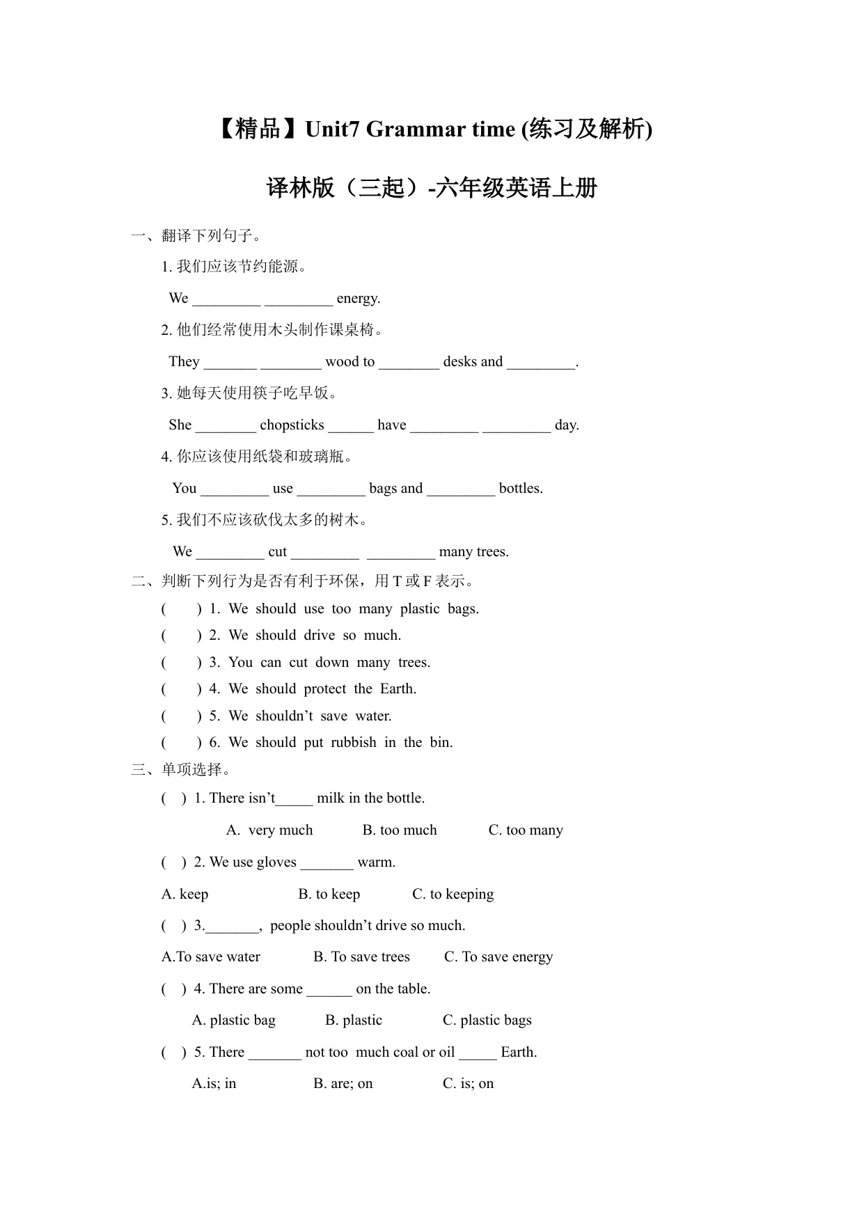 上一篇:一课一练-Unit7 Fun time, Sound time & Culture time (练习及解析) 译林版(三起)-六年级英语上册