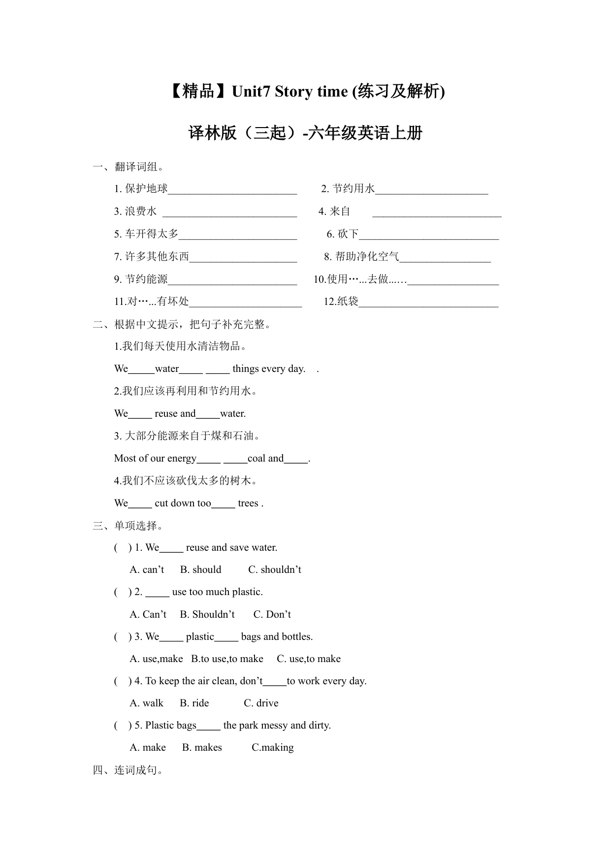 上一篇:一课一练-Unit7 Grammar time (练习及解析)译林版(三起)-六年级英语上册