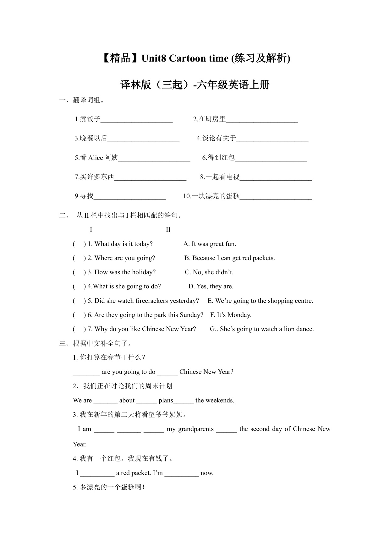 下一篇:一课一练-Unit8 Checkout time & Ticking time (练习及解析)| 译林版(三起)-六年级英语上册