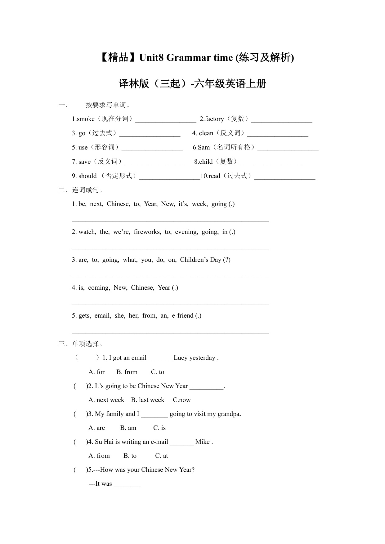 上一篇:一课一练-Unit8 Fun time, Sound time & Culture time (练习及解析)|译林版(三起)-六年级英语上册