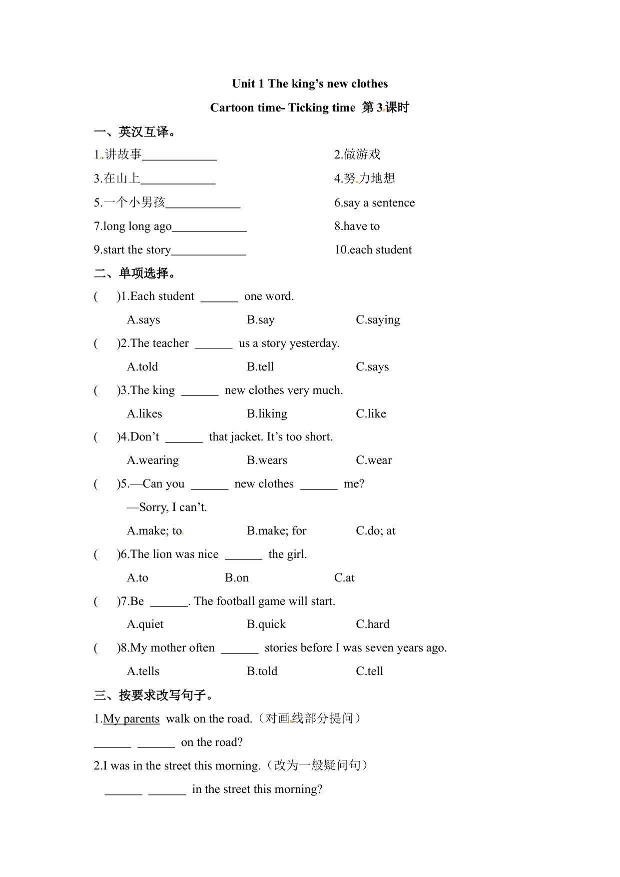 上一篇:六年级上册英语课时练-Unit 1 The king s new clothes 课时2 Grammar time- Culture time 译林三起(含答案)