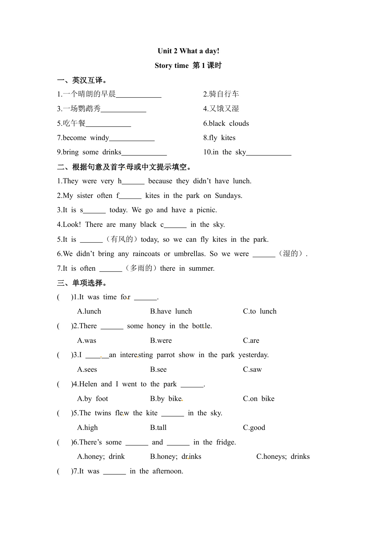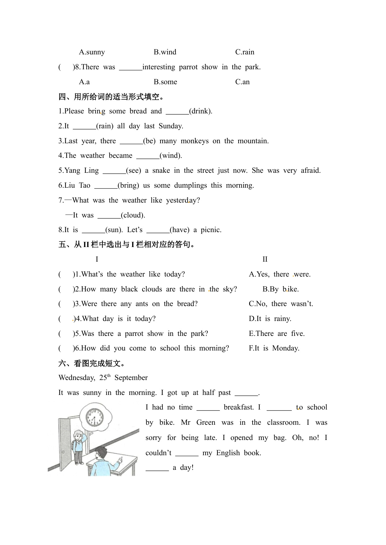 下一篇:六年级上册英语课时练-Unit 2 What a day 课时2 Grammar time- Song time 译林三起(含答案)