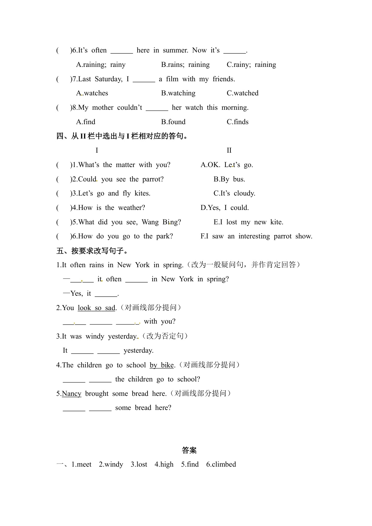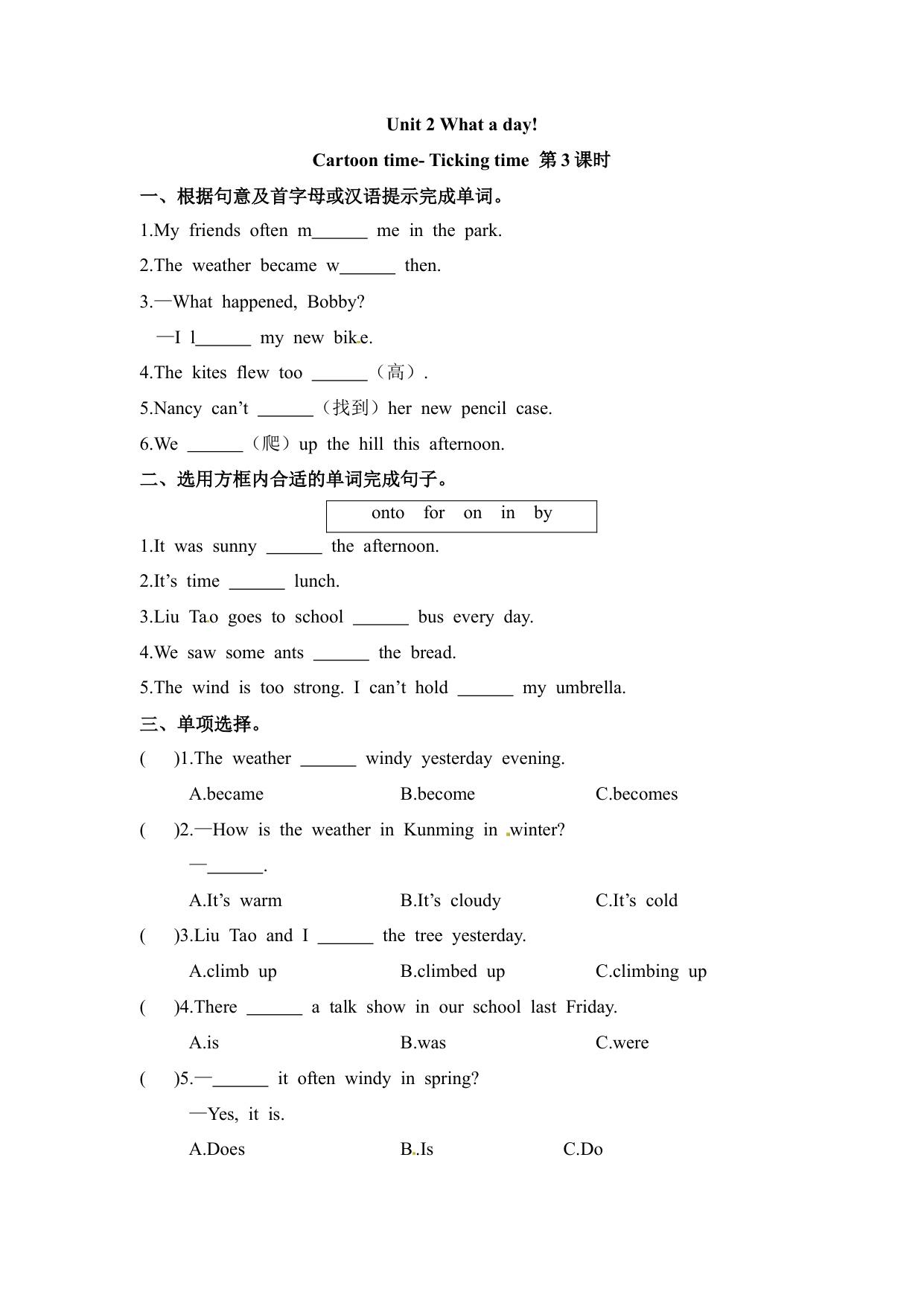 上一篇:六年级上册英语课时练-Unit 2 What a day 课时2 Grammar time- Song time 译林三起(含答案)