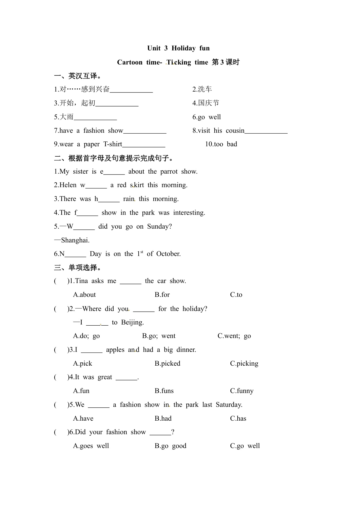 上一篇:六年级上册英语课时练-Unit 3 Holiday fun 课时2 Grammar time- Culture time 译林三起(含答案)