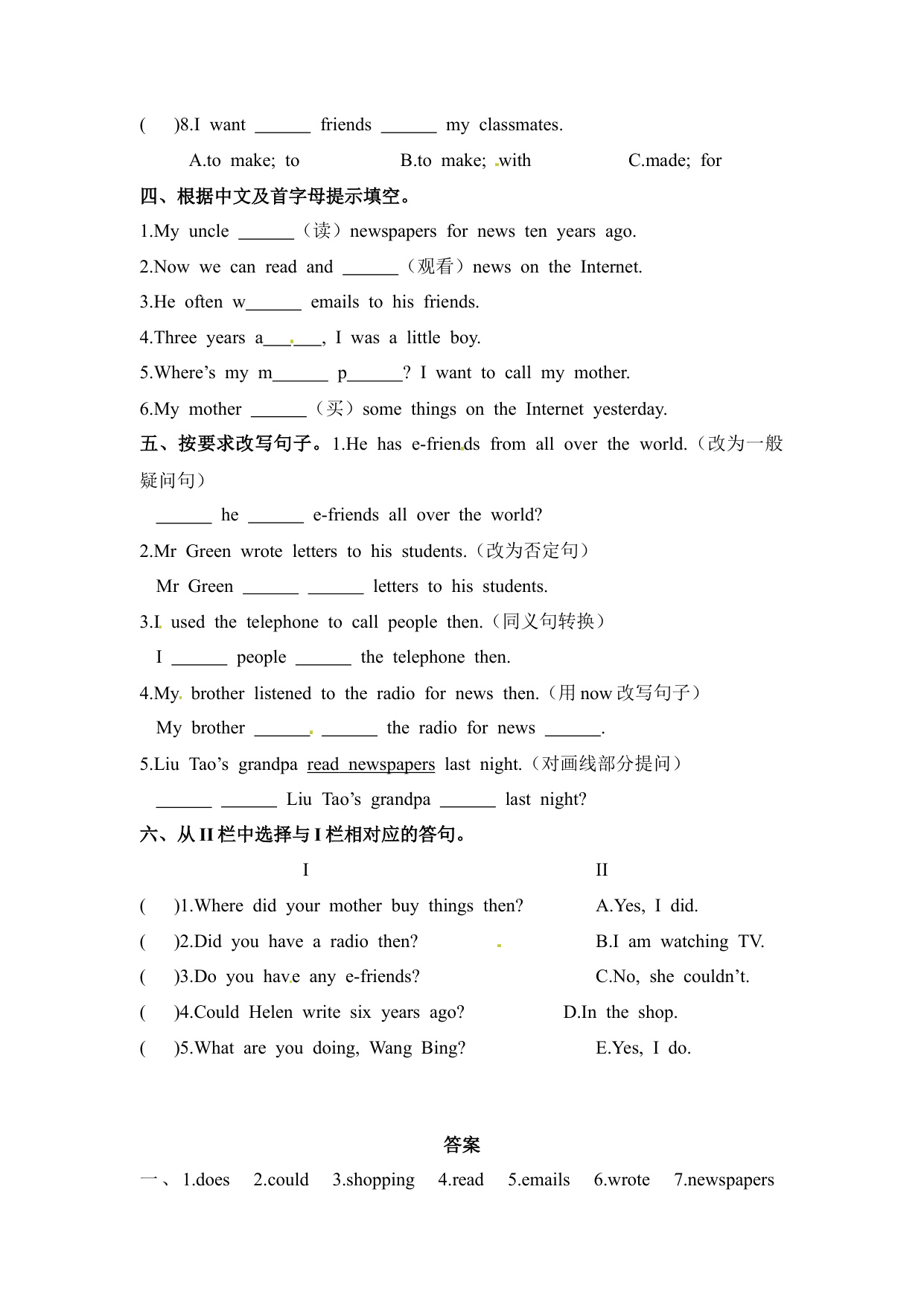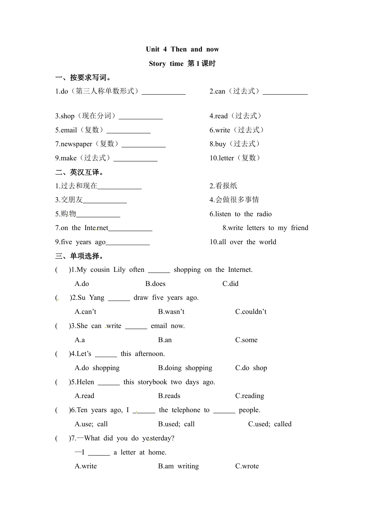 下一篇:六年级上册英语课时练-Unit 4 Then and now 课时2 Grammar time- Culture time 译林三起(含答案)