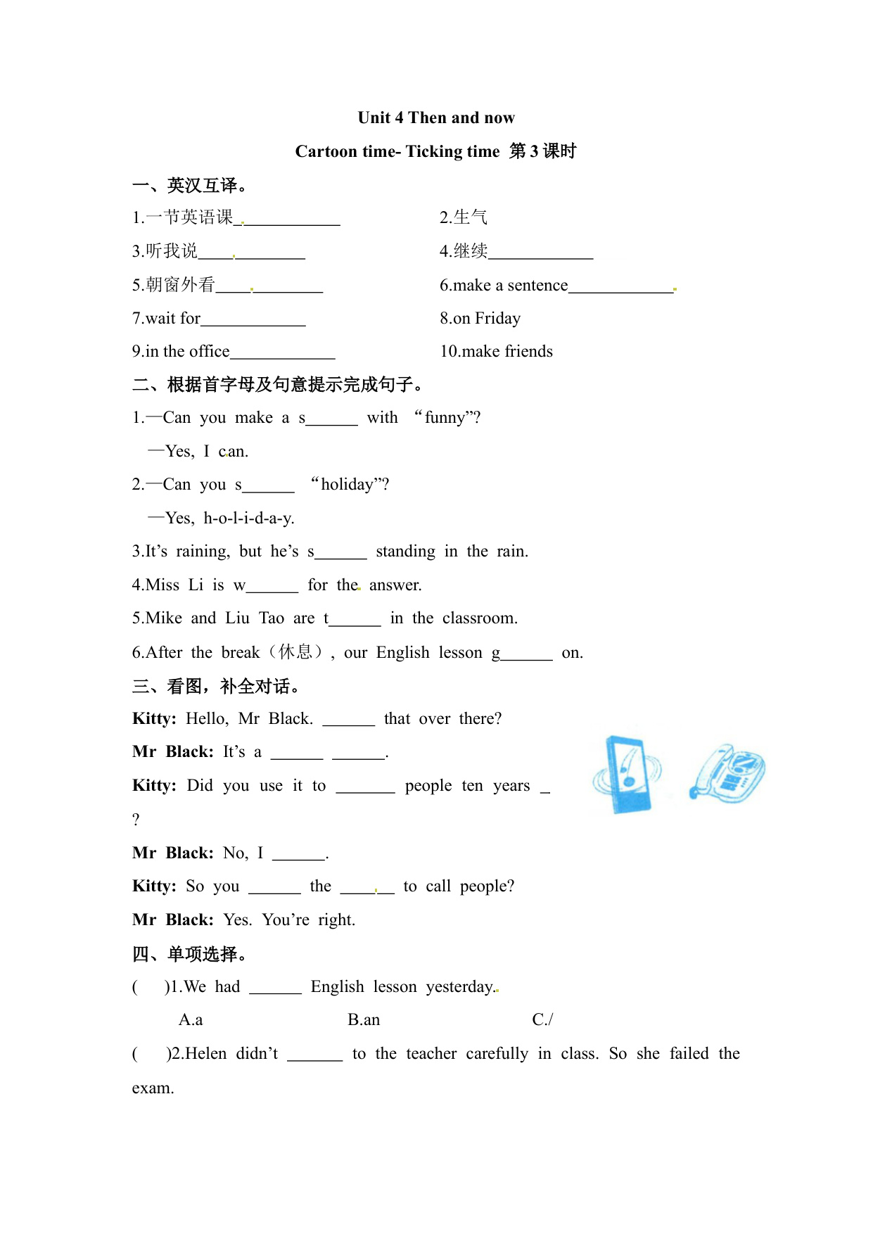 上一篇:六年级上册英语课时练-Unit 4 Then and now 课时2 Grammar time- Culture time 译林三起(含答案)