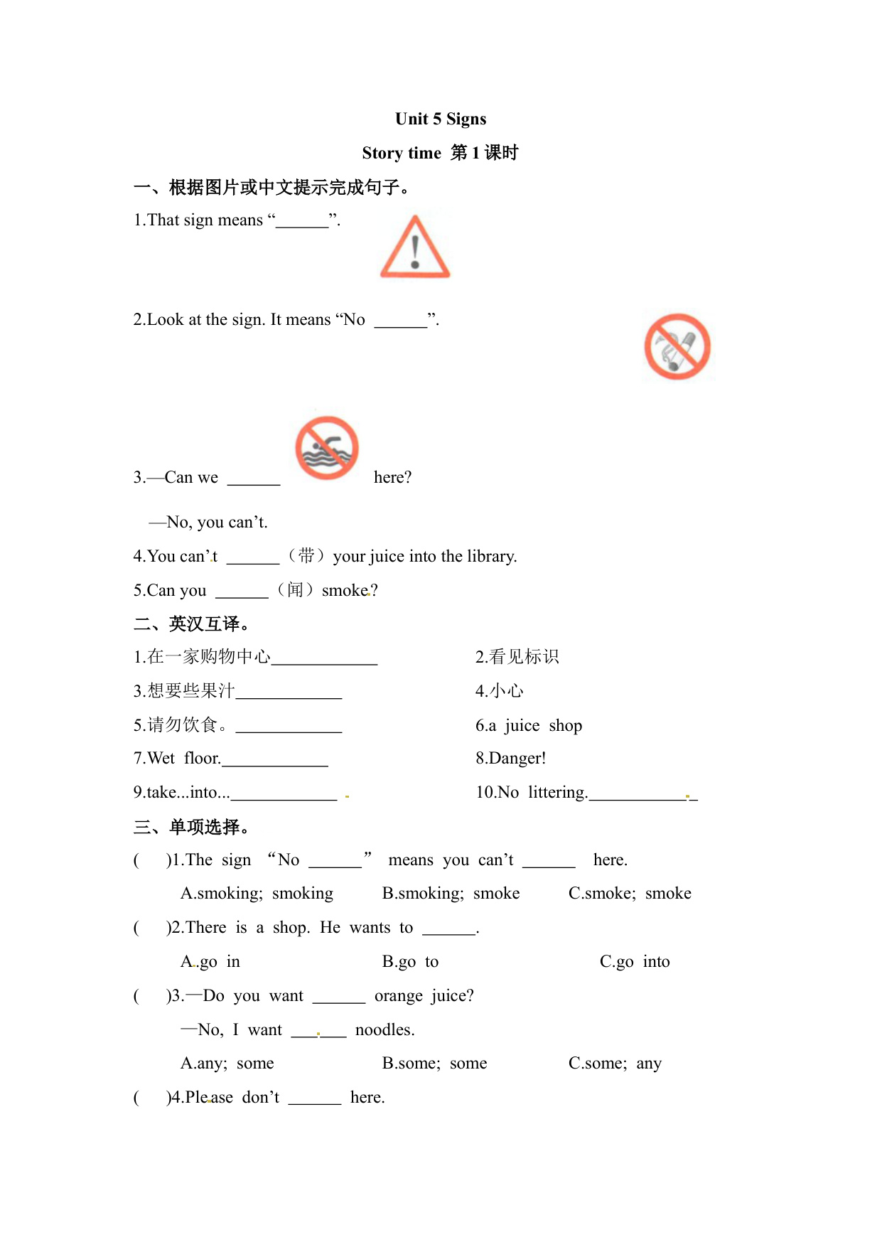 下一篇:六年级上册英语课时练-Unit 5 Signs 课时2 Grammar time- Culture time 译林三起(含答案)