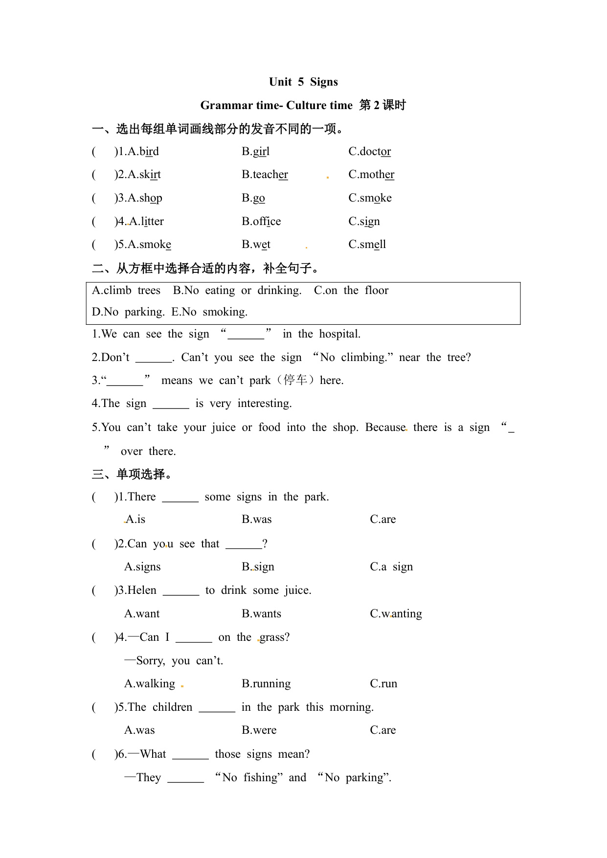 下一篇:六年级上册英语课时练-Unit 5 Signs 课时3 Cartoon time- Ticking time 译林三起(含答案)
