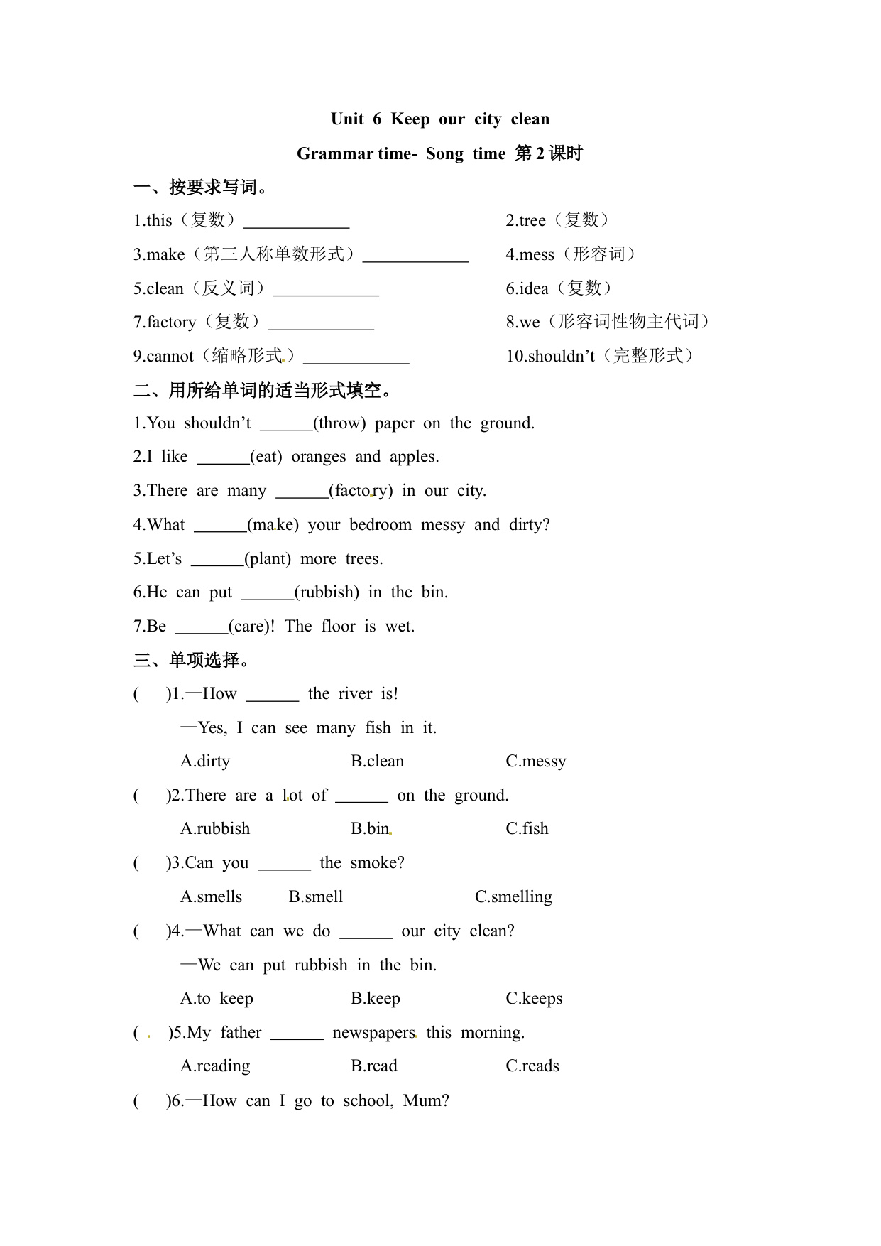 下一篇:六年级上册英语课时练-Unit 6 Keep our city clean 课时3 Cartoon time- Ticking time 译林三起(含答案)