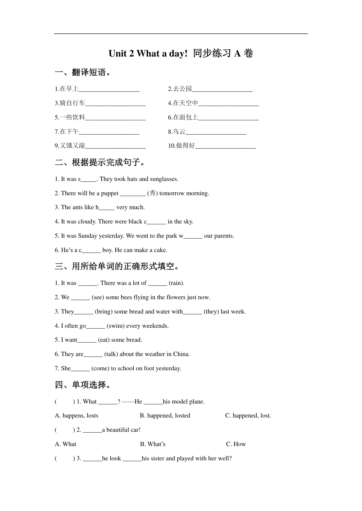 上一篇:苏教译林版小学英语六上 Unit 1 The King s new clothes 同步练习A卷