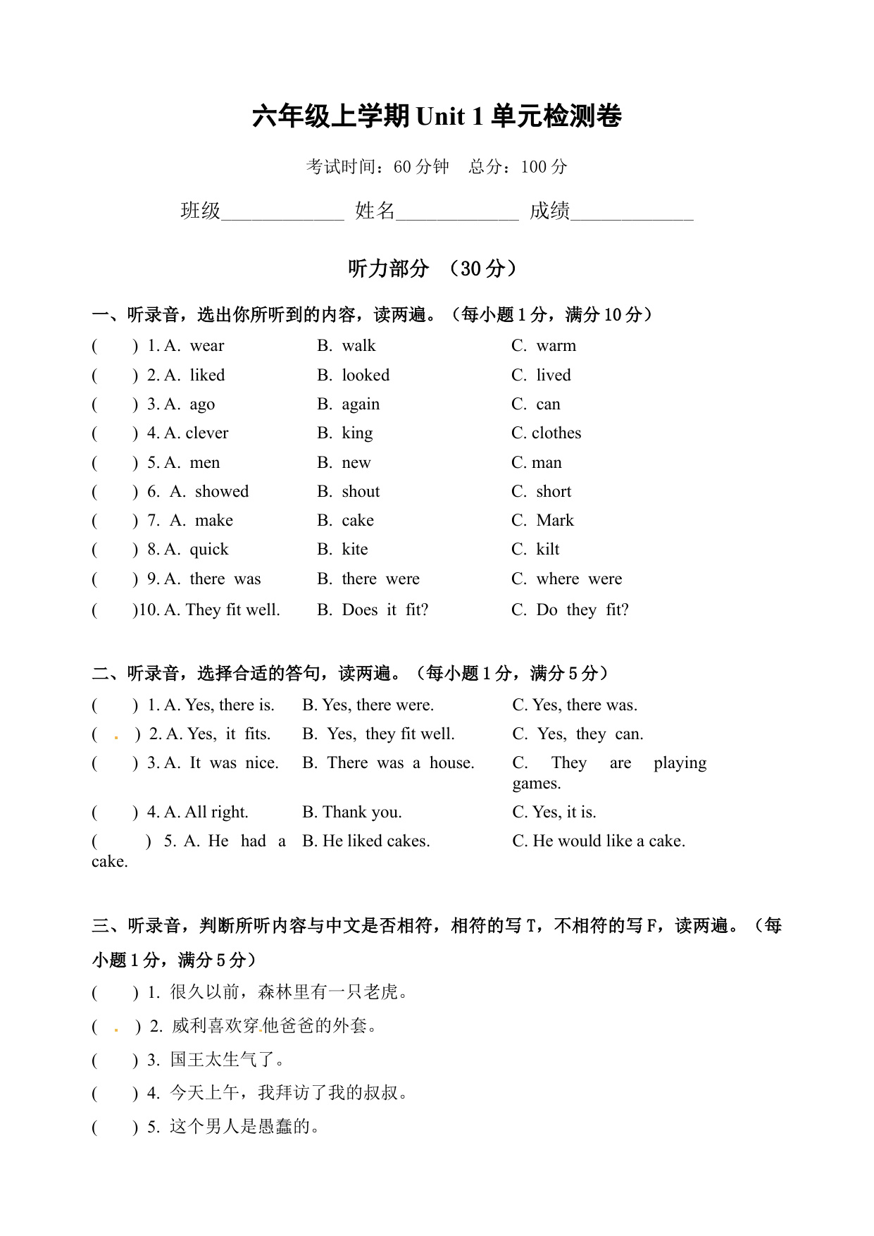 下一篇:六年级上册英语单元测试-Unit 3 Holiday Fun