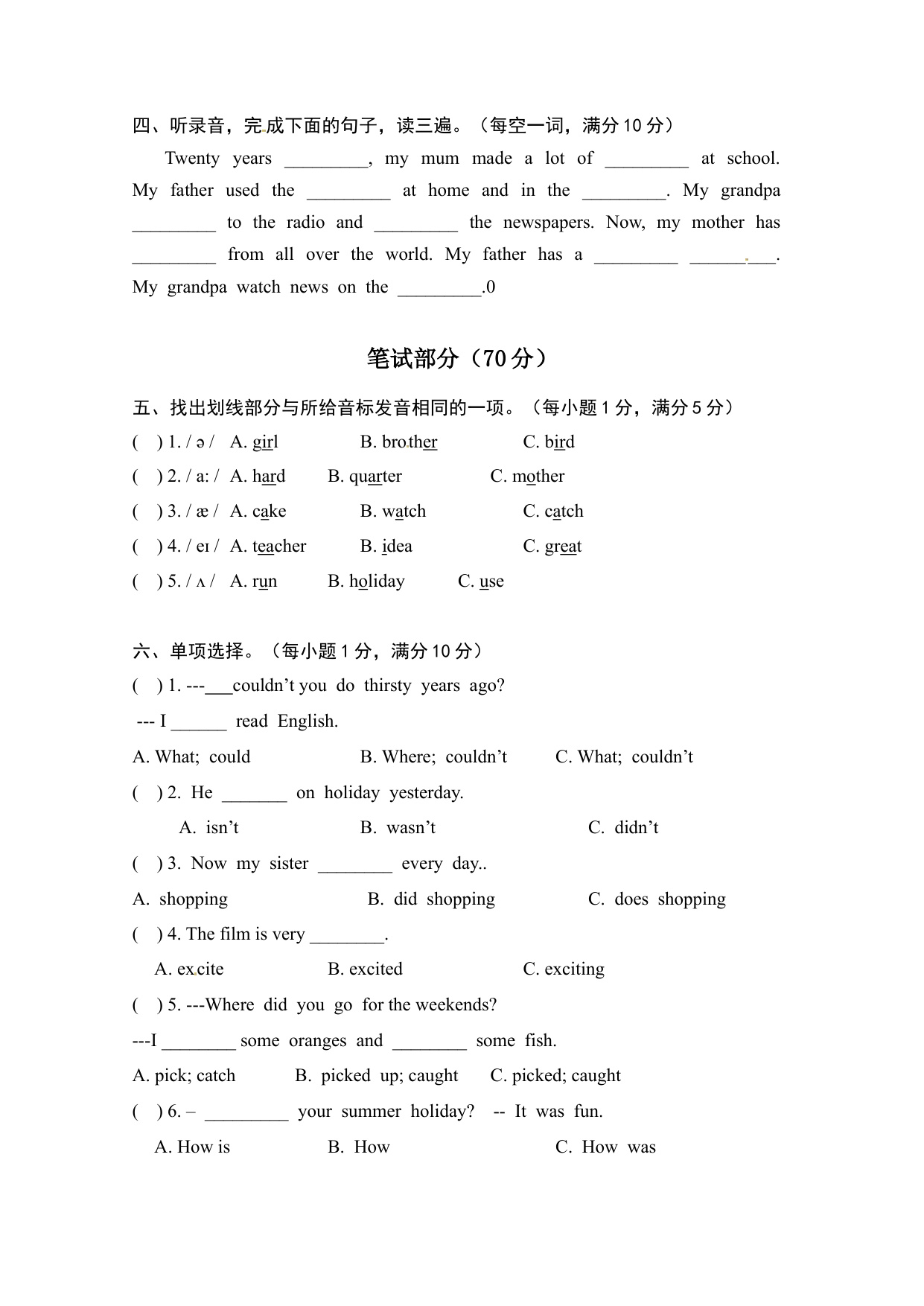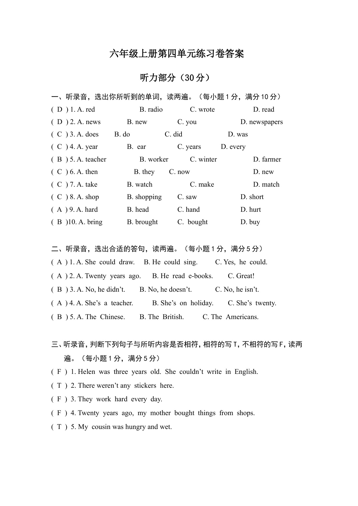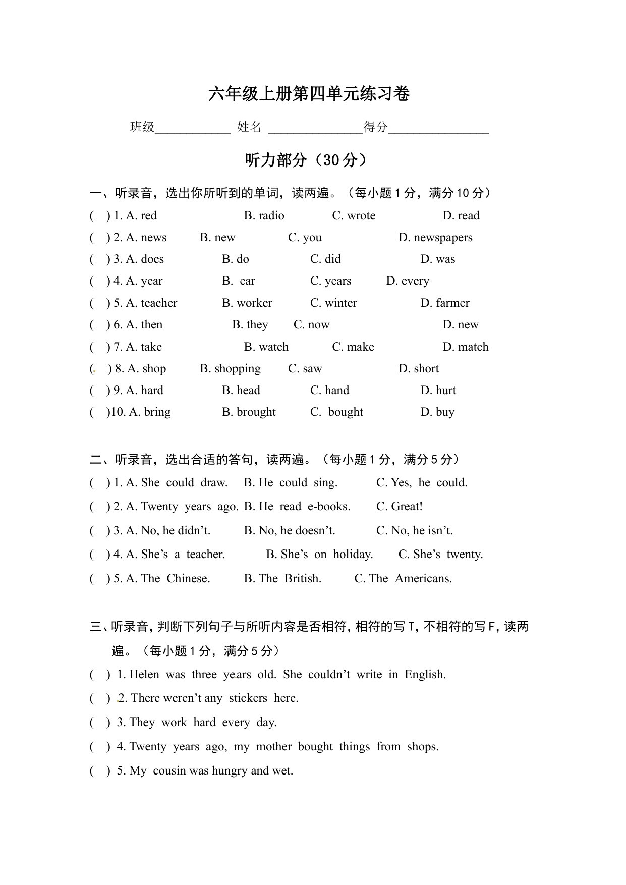 上一篇:六年级上册英语单元测试卷-Unit 2 What a day