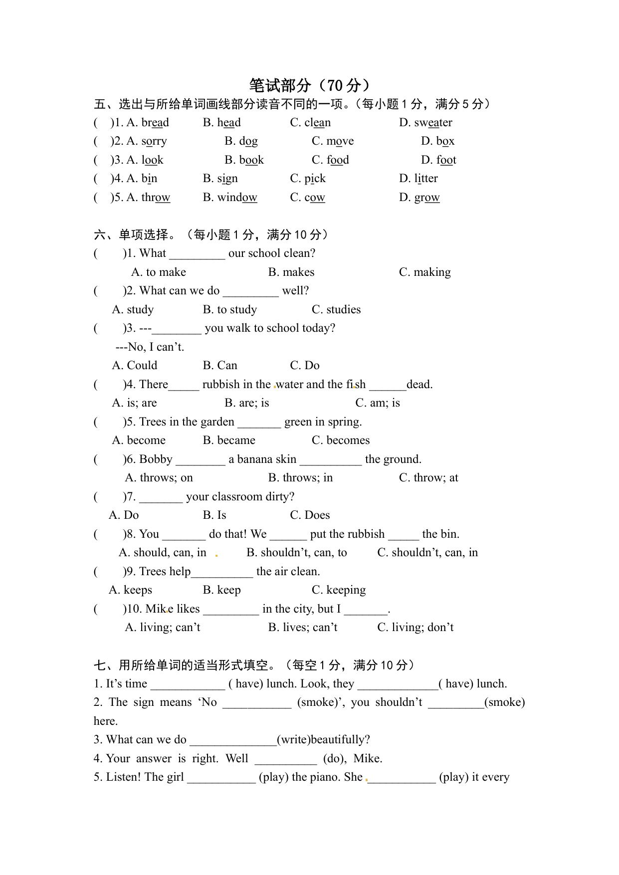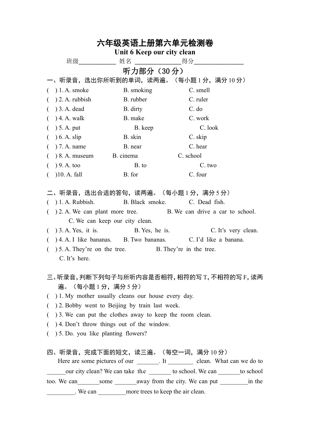 下一篇:六年级上册英语单元测试卷-Unit 7 Protect the earth