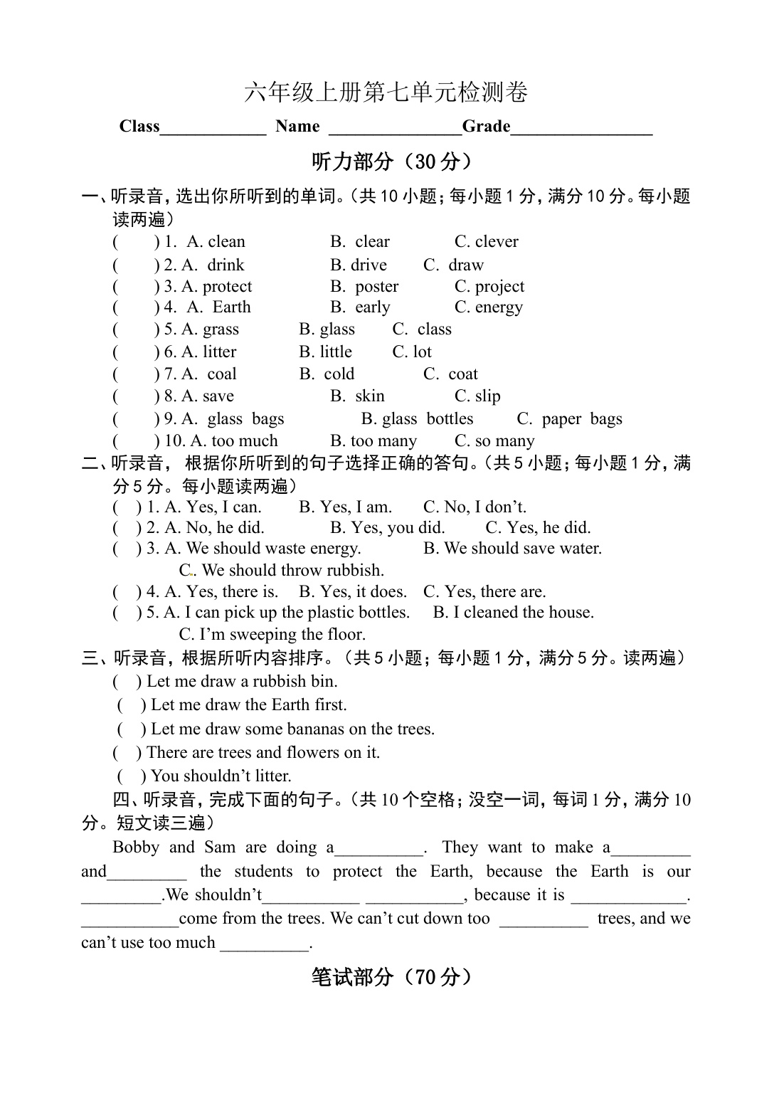 上一篇:六年级上册英语单元测试卷-Unit 6 Keep our city clean