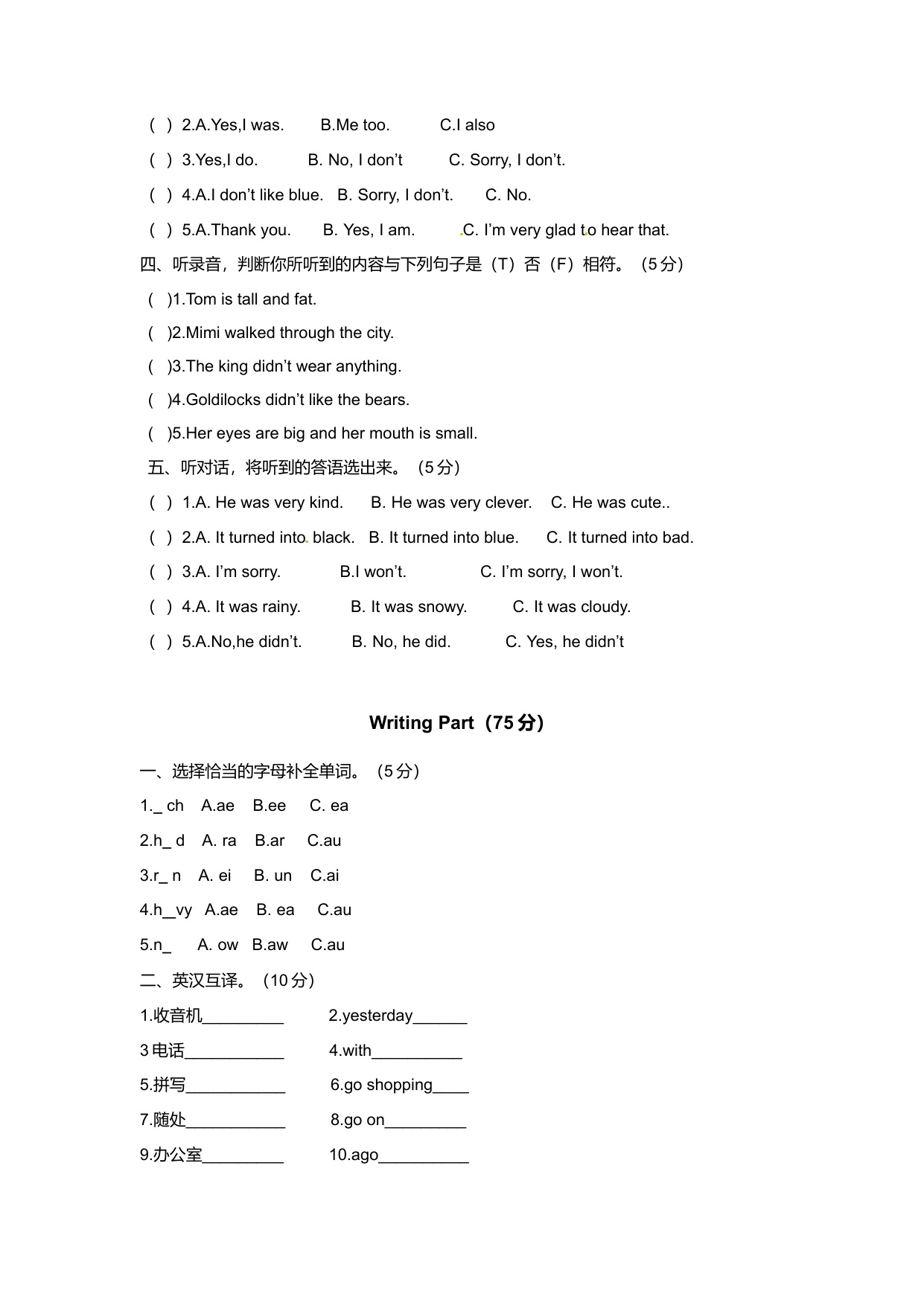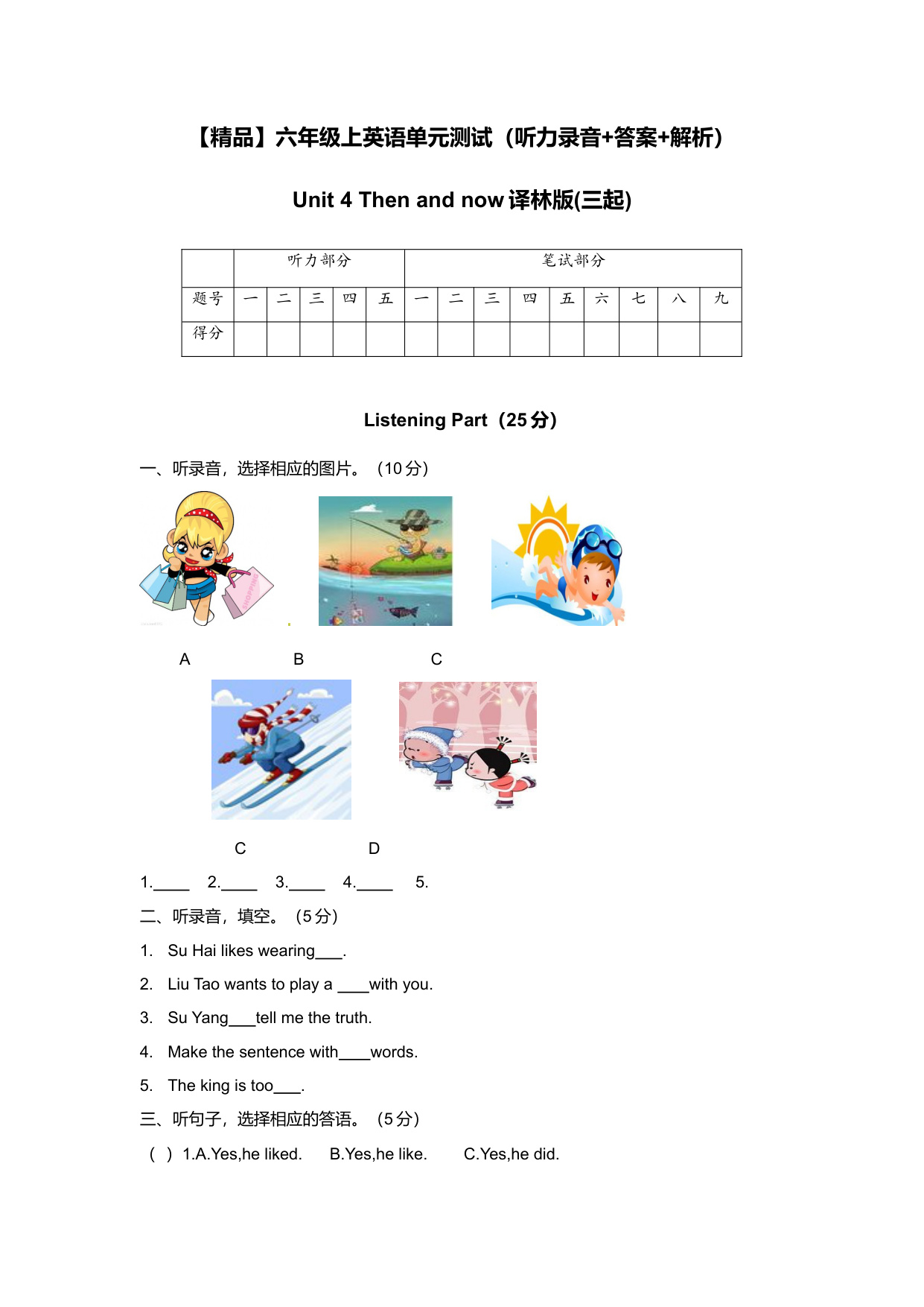 下一篇:(听力+答案+解析)-Unit 5 Signs译林版(三起)-单元测试卷