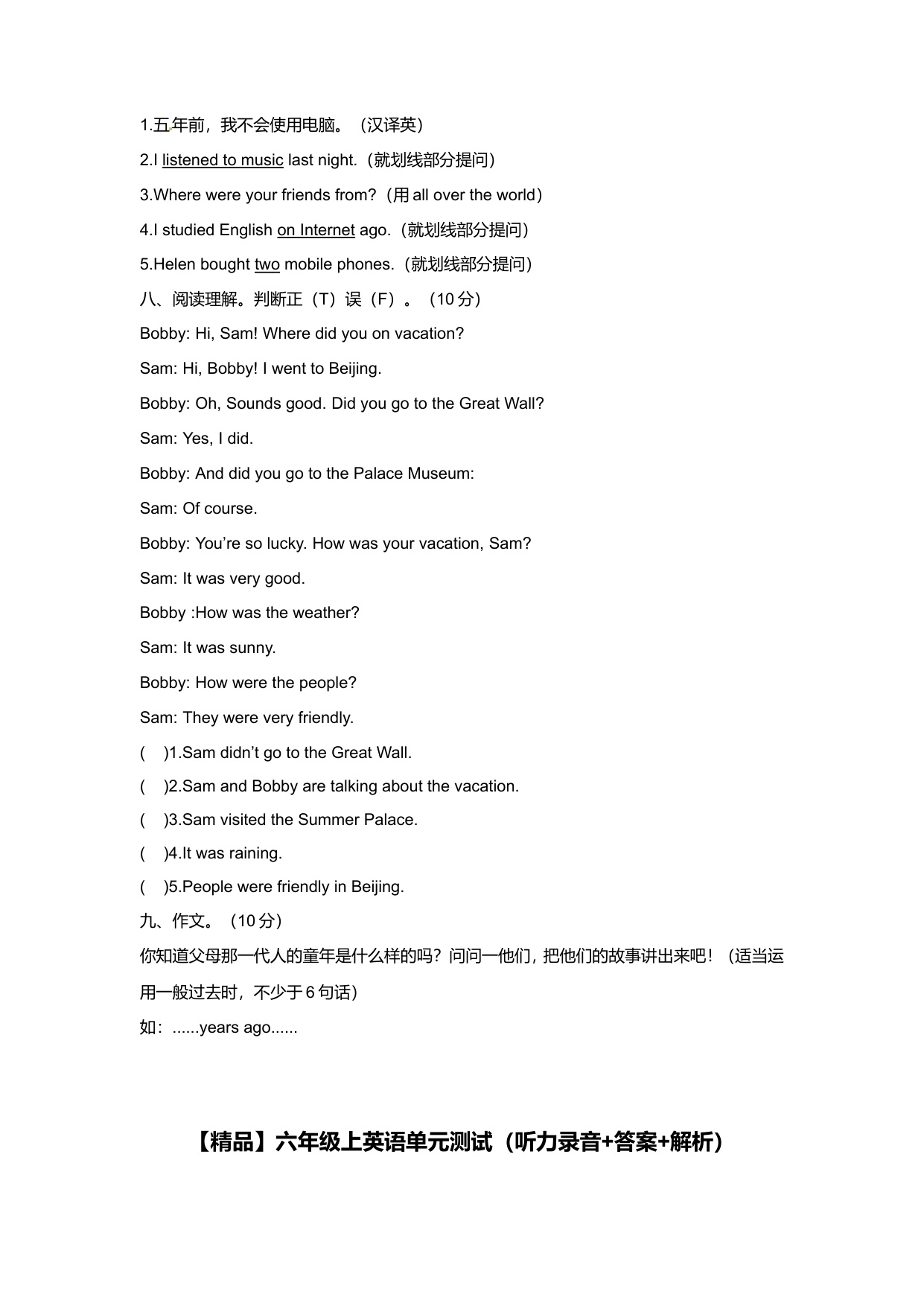 上一篇:(听力+答案+解析)-Unit 3 Holiday fun译林版(三起)-单元测试卷
