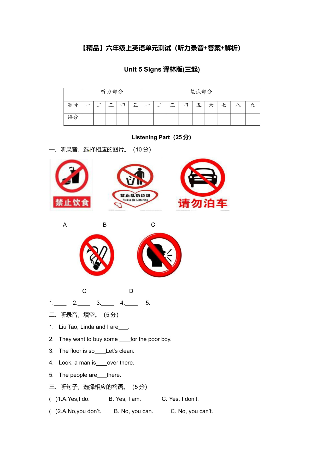 下一篇:(听力+答案+解析)-Unit 6 Keep our city clean译林版(三起)-单元测试卷