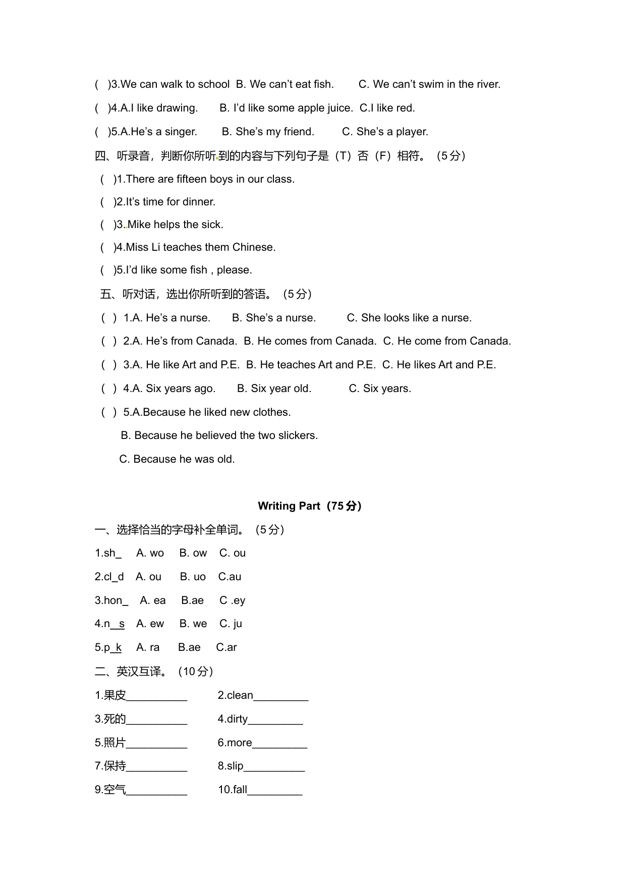 上一篇:(听力+答案+解析)-Unit 5 Signs译林版(三起)-单元测试卷