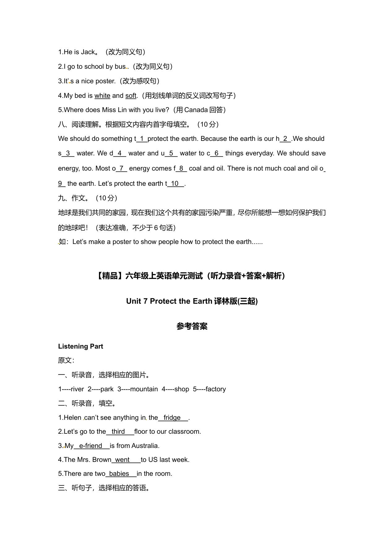 上一篇:(听力+答案+解析)-Unit 6 Keep our city clean译林版(三起)-单元测试卷