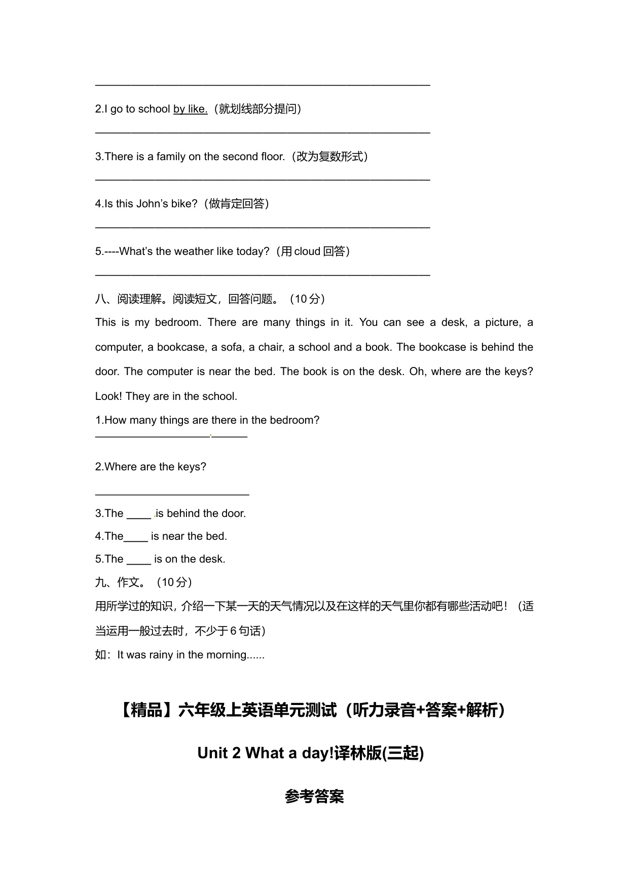 上一篇:(听力+答案+解析)-Unit 8 Chinese New Year 译林版(三起)-单元测试卷