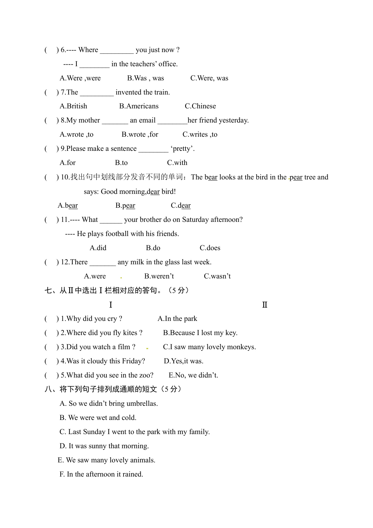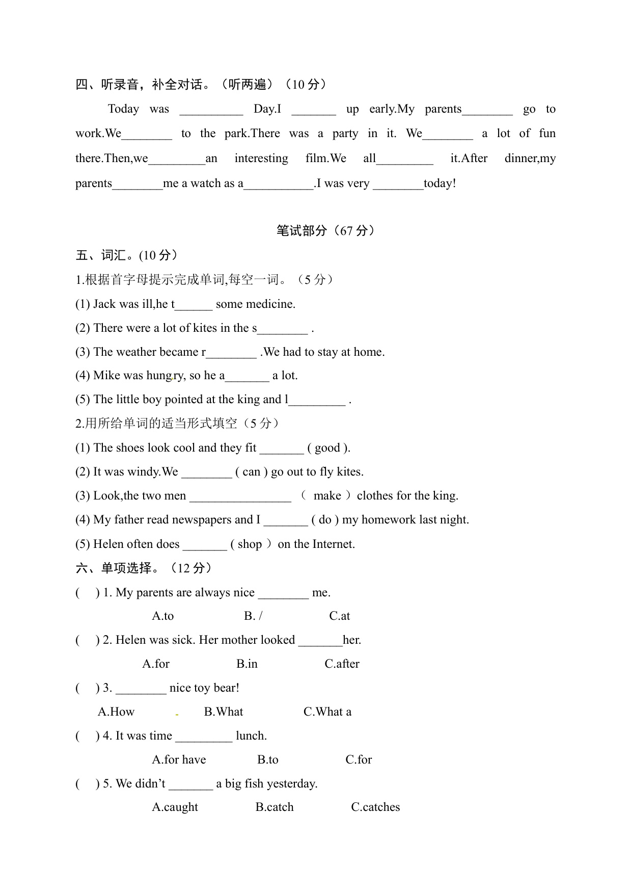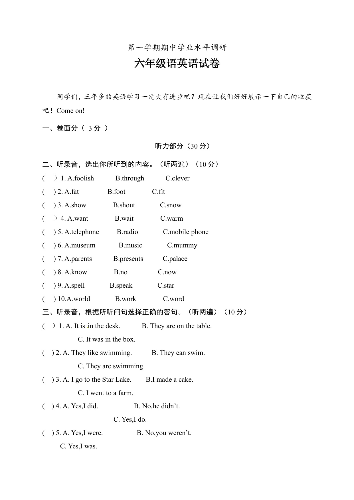 下一篇:六年级上册期中测试卷(3)含听力