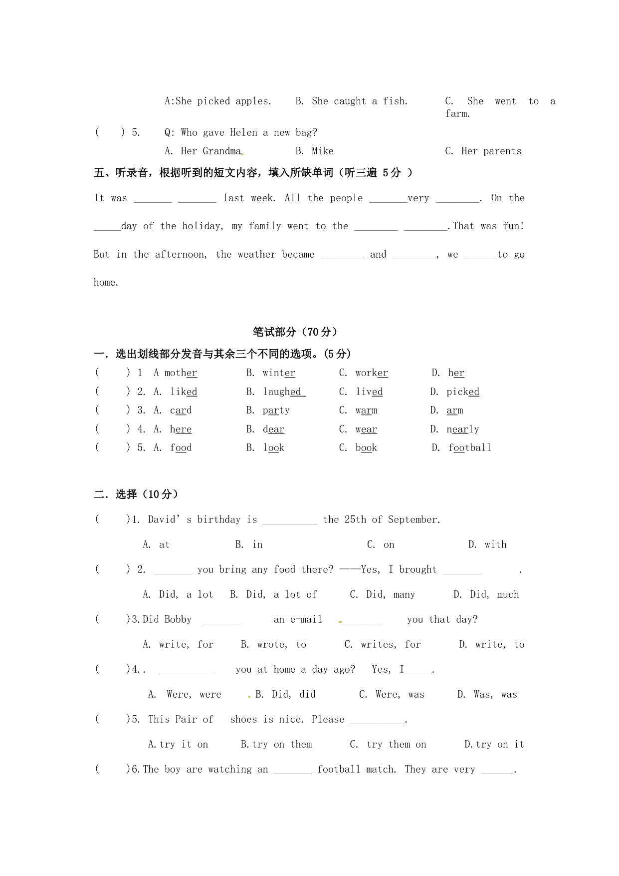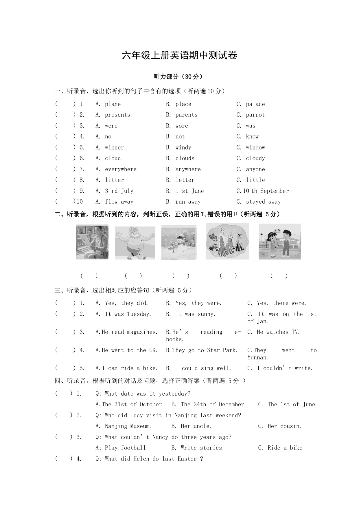 上一篇:六年级上册期中测试卷(4)含听力
