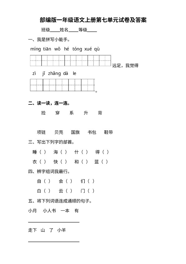 上一篇:部编版一年级语文上册-第四单元阅读理解练习+答案解析