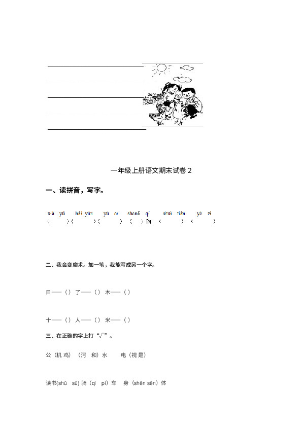 下一篇:语文一年级上册期末测试卷(一)及答案