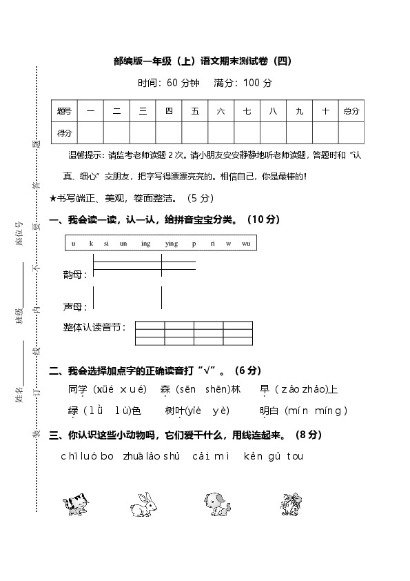 上一篇:语文一年级上册期末测试卷(三)及答案