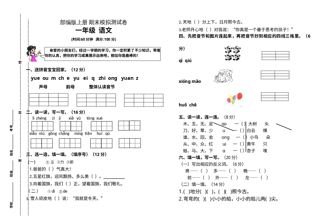 下一篇:部编版一年级上册语文期末测试卷附答案4