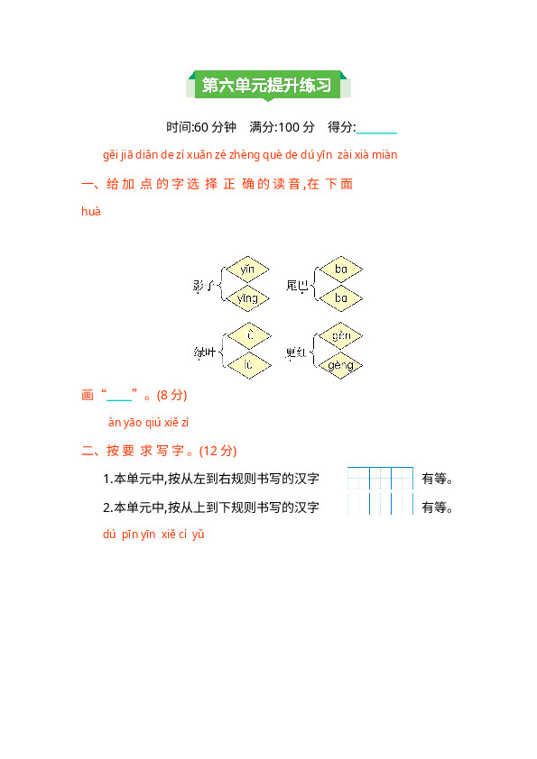 上一篇:一上语文第八单元提升练习
