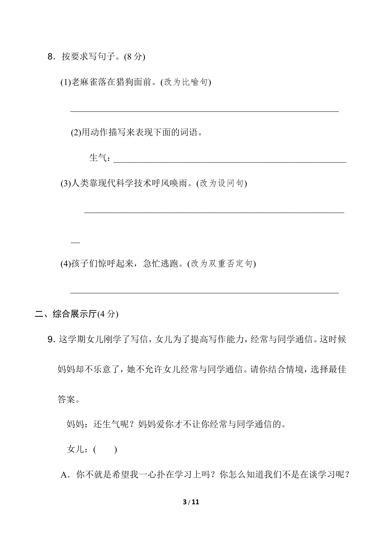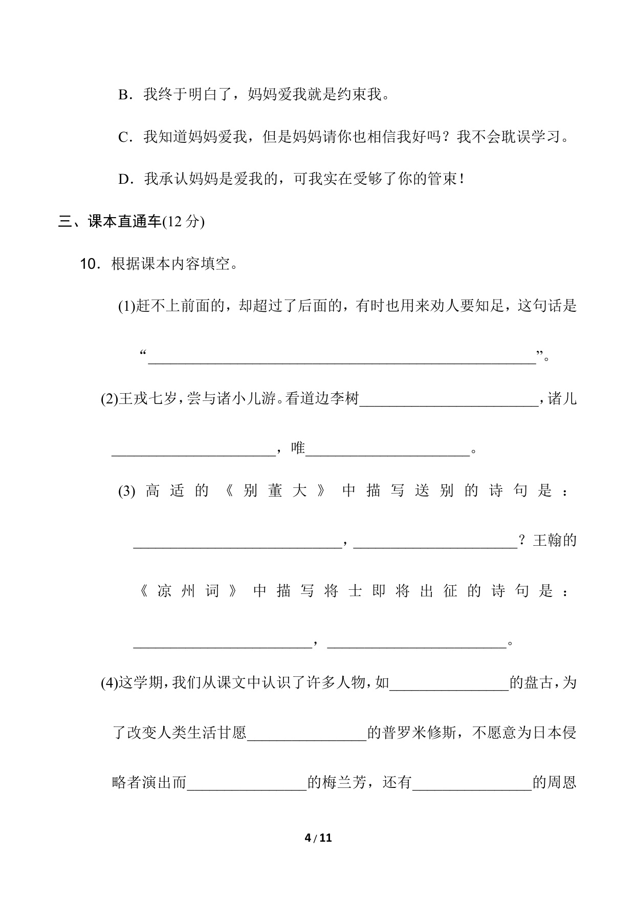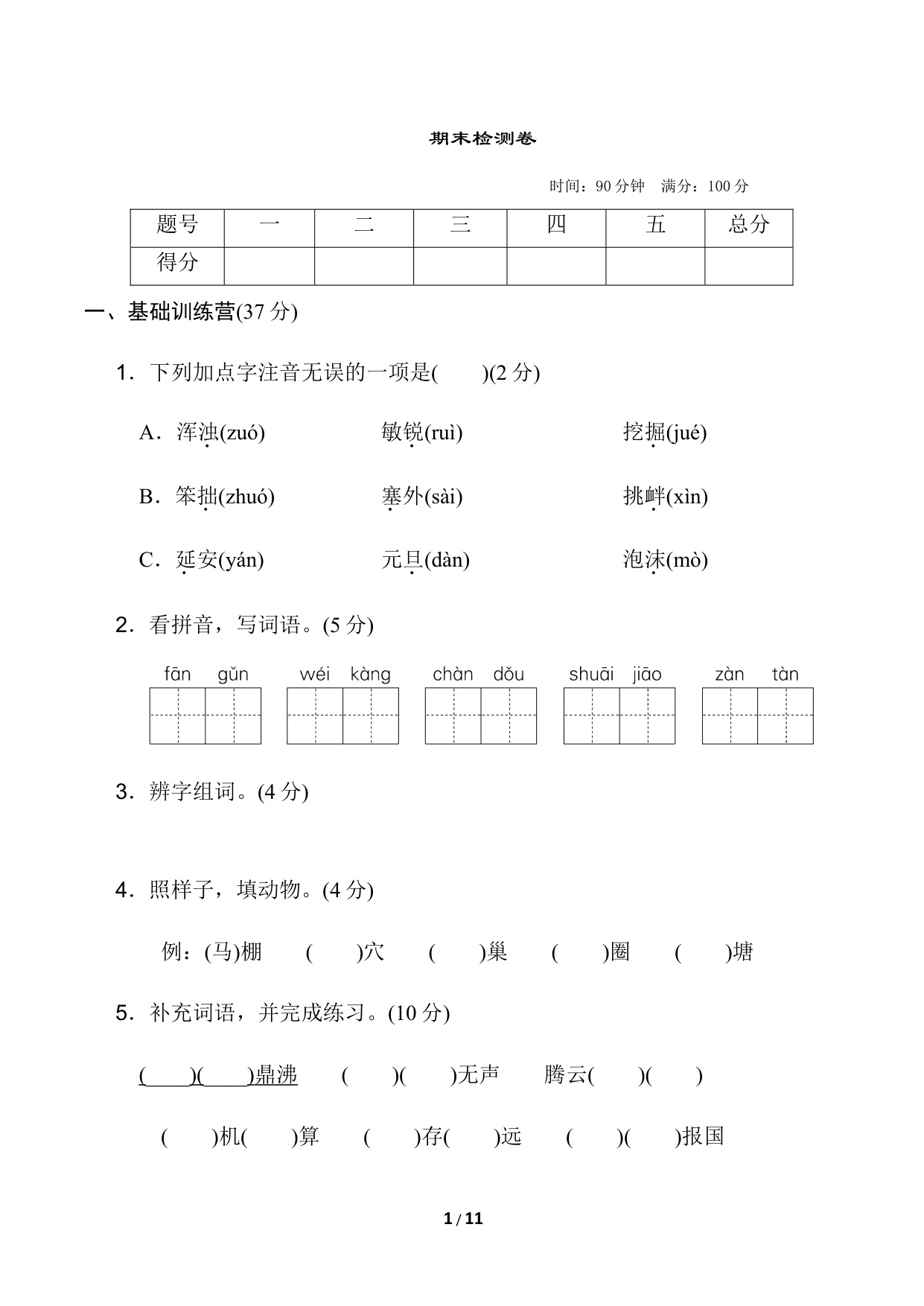 下一篇:四年级语文上册期末模拟卷(一)