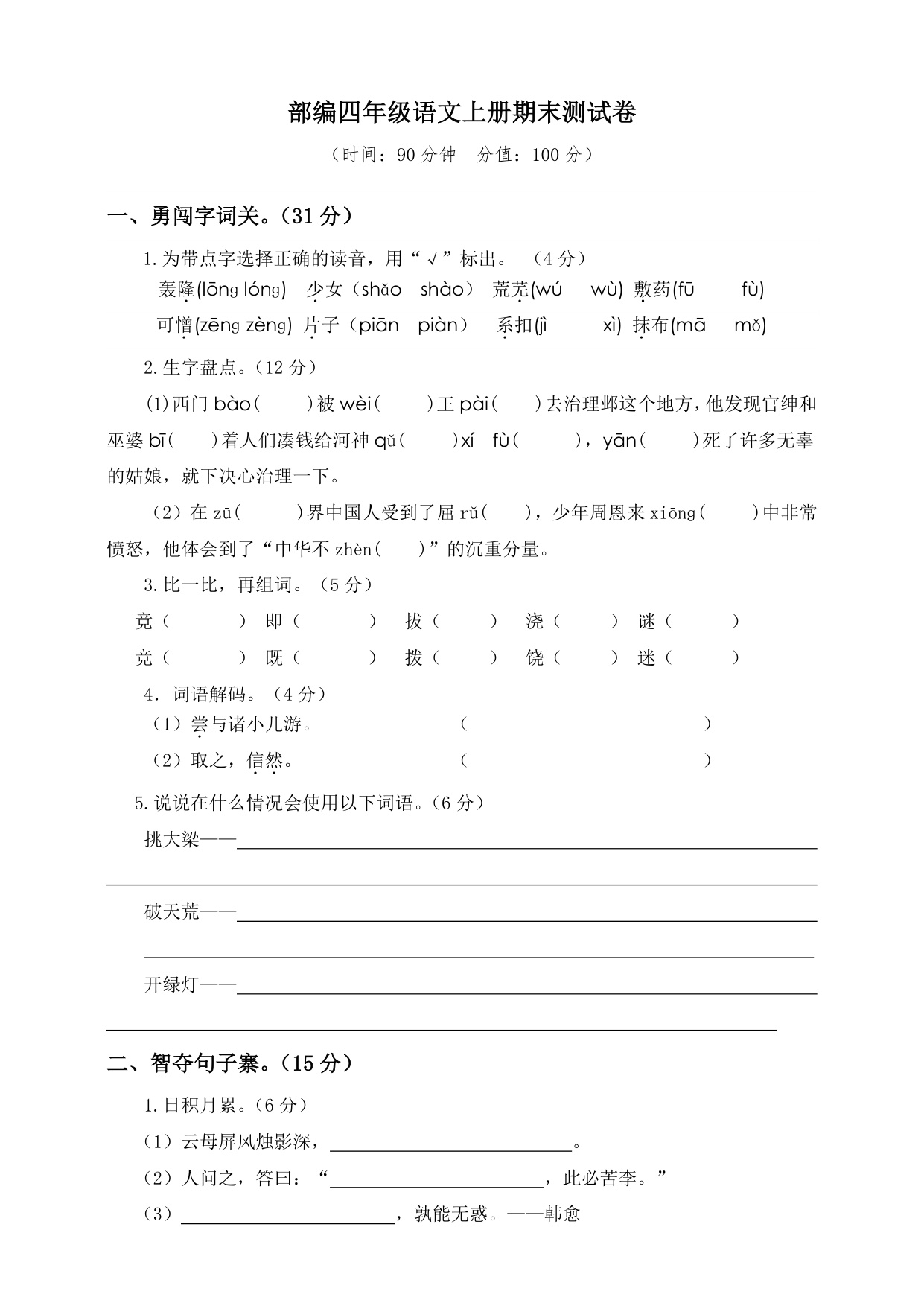 下一篇:语文四年级上册期末测试卷2(含答案)